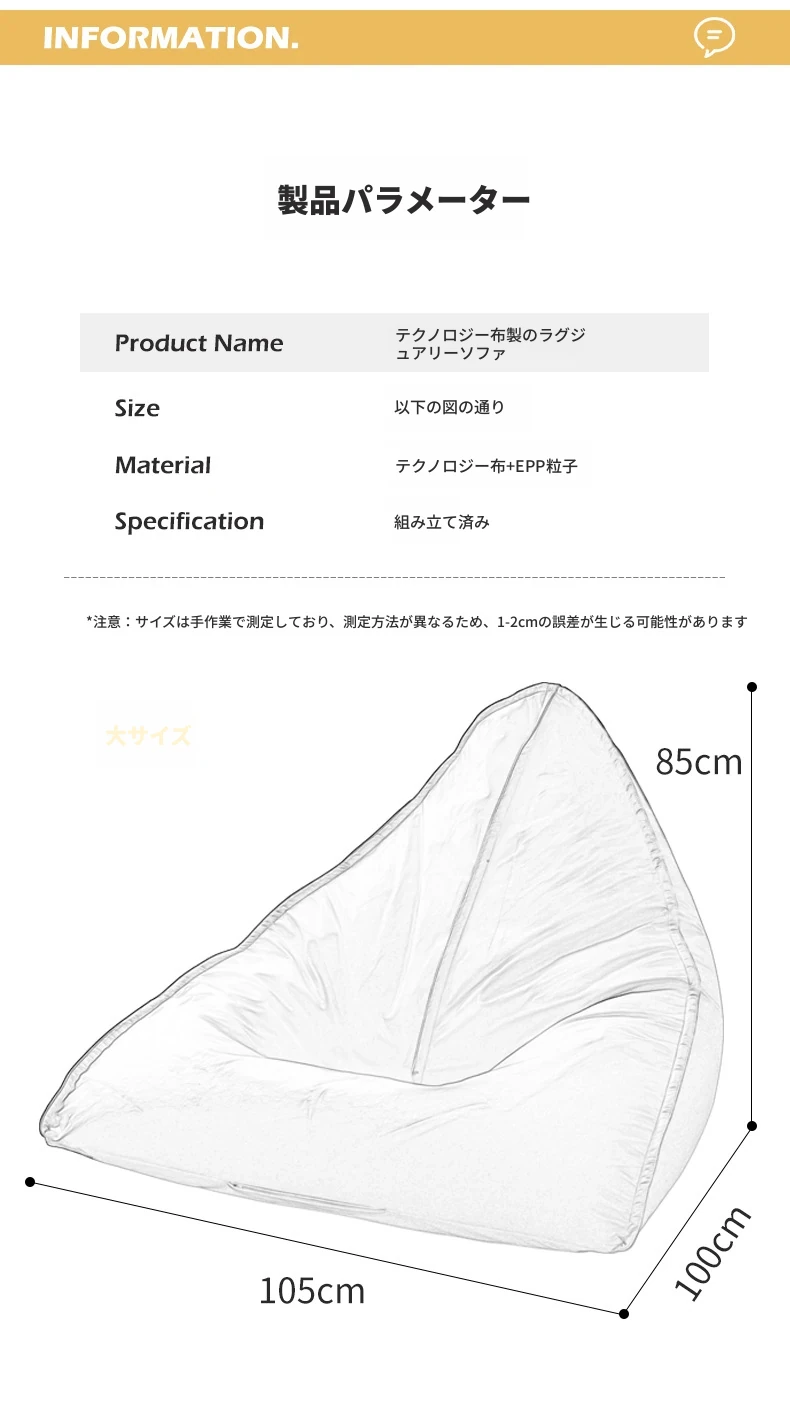 EPP楽ちん豆袋ソファー - 寝転んでリラックス!一人用、寝室やバルコニーに最適なタタミスタイル。子供向けにもぴったりな創造的なデザイン!テクノロジー布で快適さを追求。
