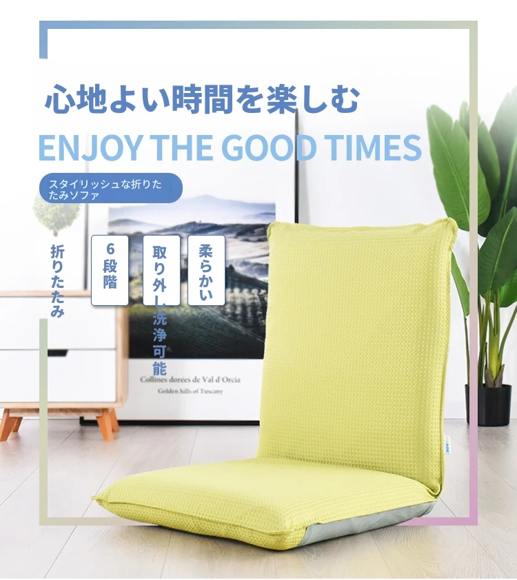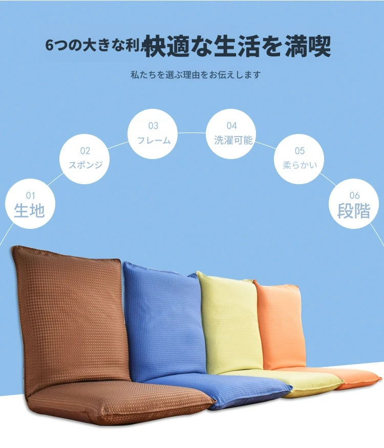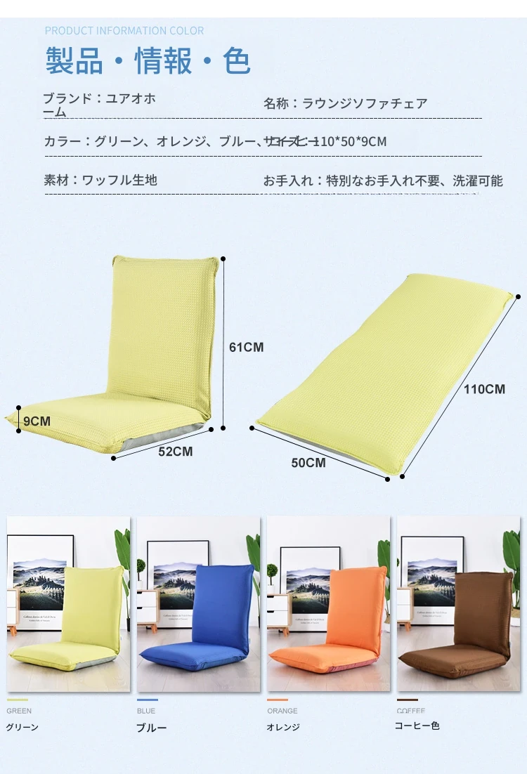 おしゃれな一人用ソファ!リラックスできる畳スタイルのフロアソファ、窓辺やバルコニーにぴったり!折りたたみ式で収納も簡単、快適な背もたれ付きで、あなたのくつろぎ空間を演出します。