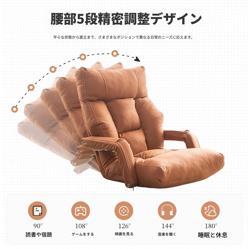 【アップグレードモデルテクノロジー布】コーヒー色 腰部+頭部5段階調整