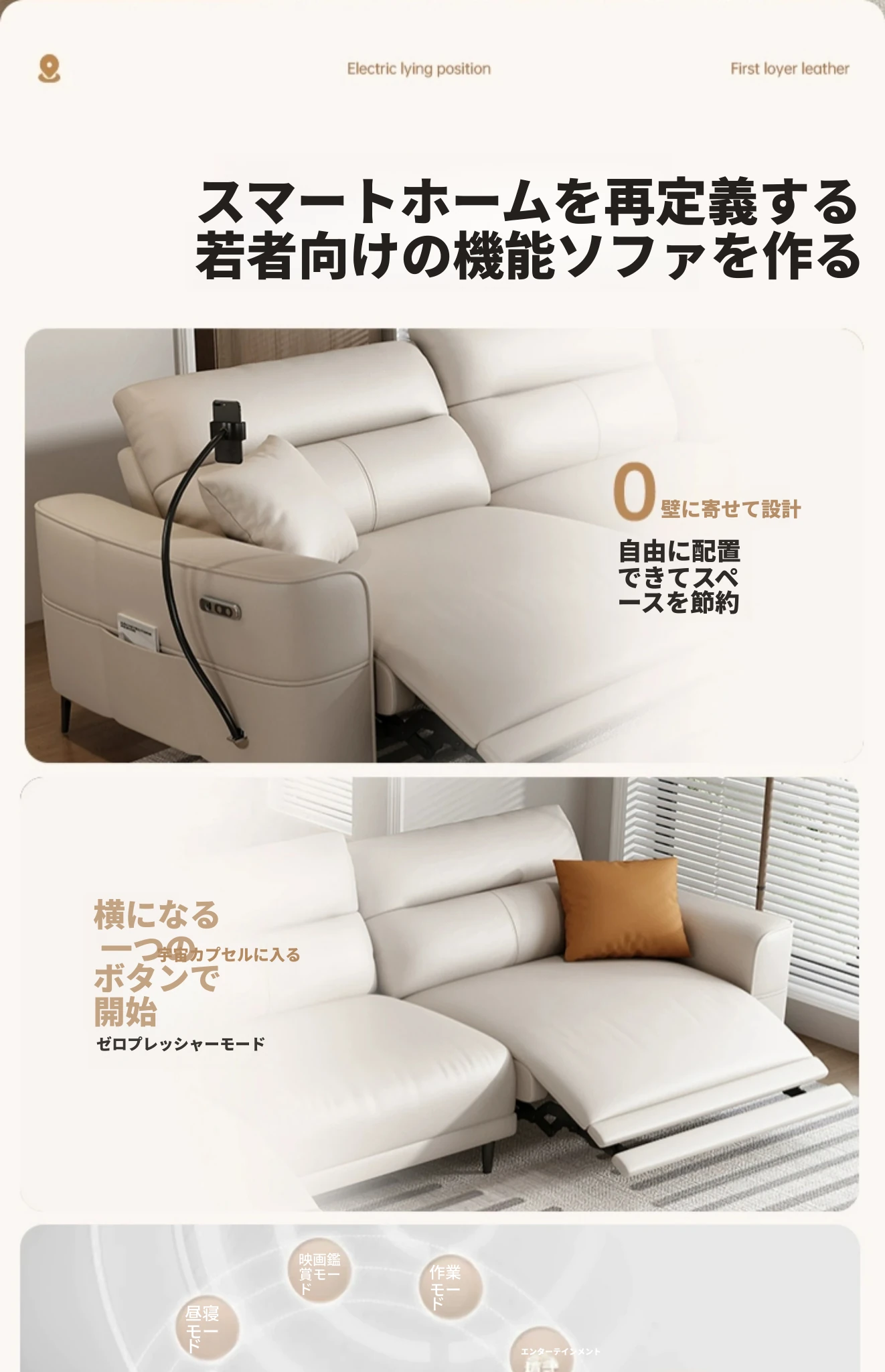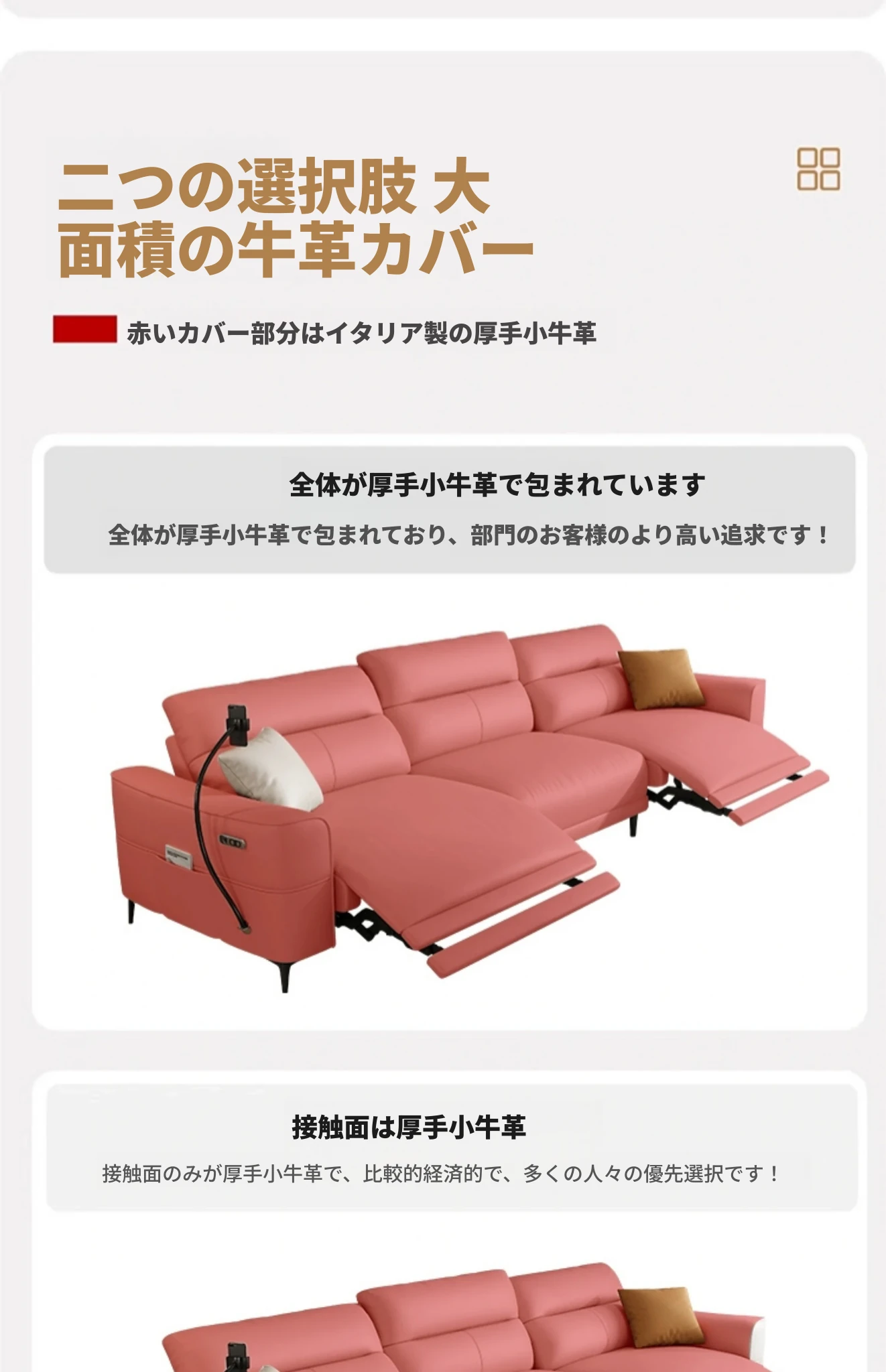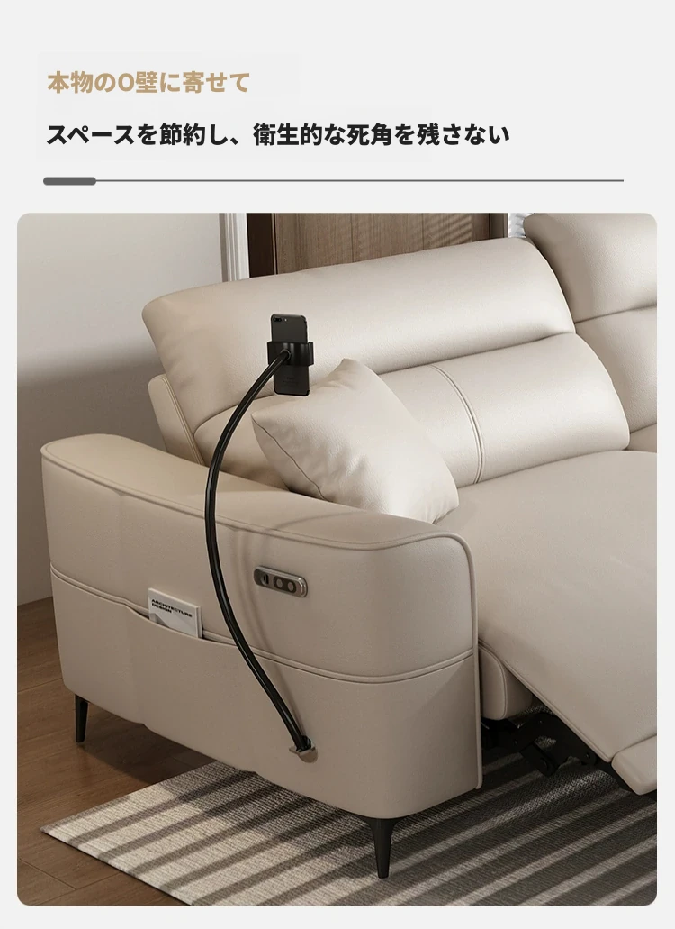 【接触面ナパ牛革】トリプル2.8メートル(ダブル電動)-スマホスタンド付き