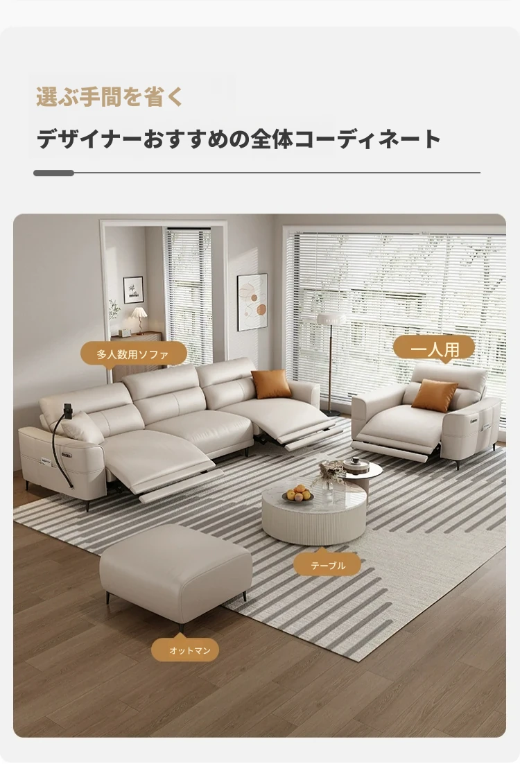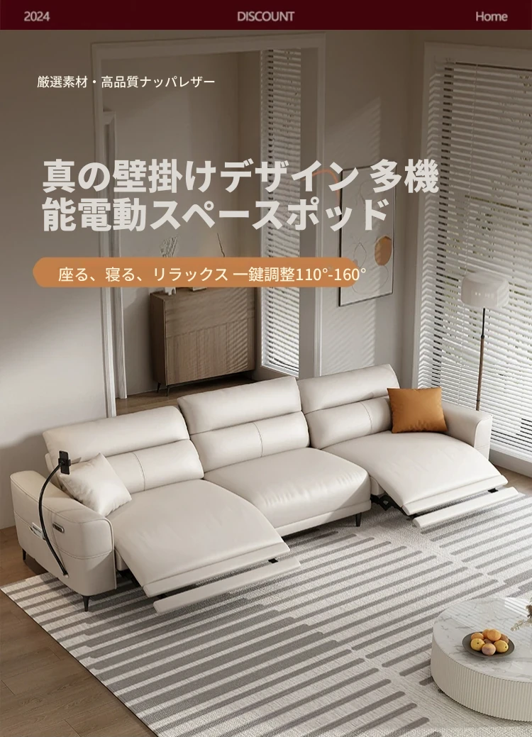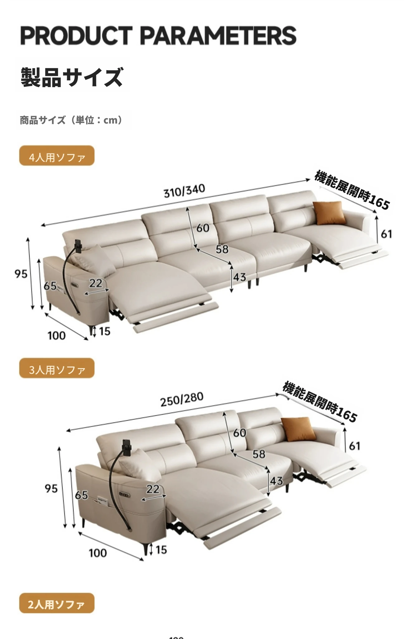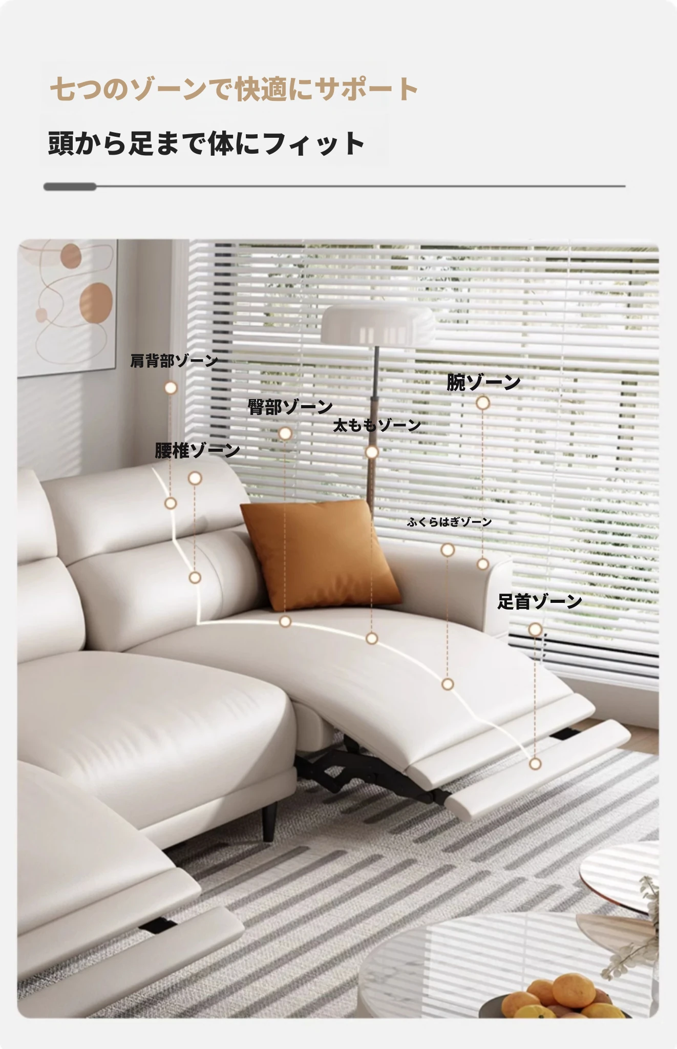 【接触面ナパ牛革】トリプル2.8メートル(ダブル電動)-スマホスタンド付き