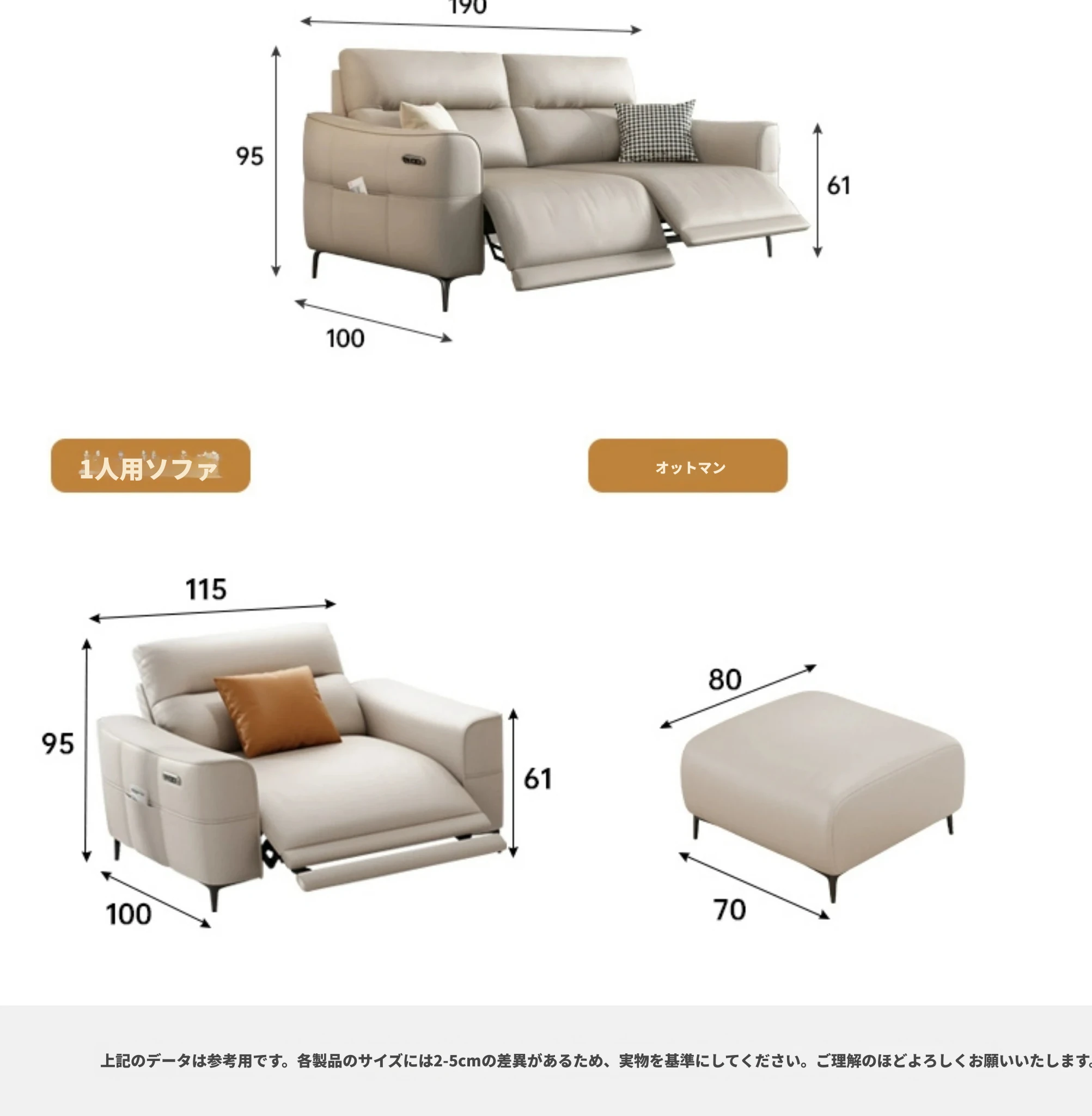 【接触面ナパ牛革】トリプル2.5メートル(ダブル電動)-スマホスタンド付き