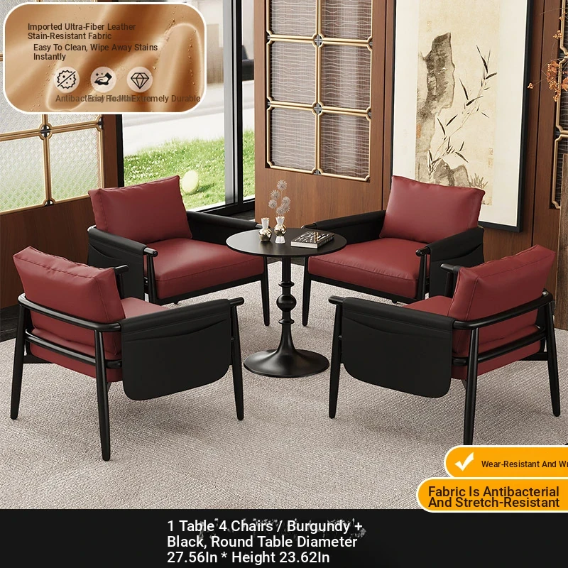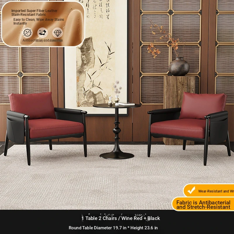 1 Table 2 Chairs [wine Red + Black] + Round Table 19.69in