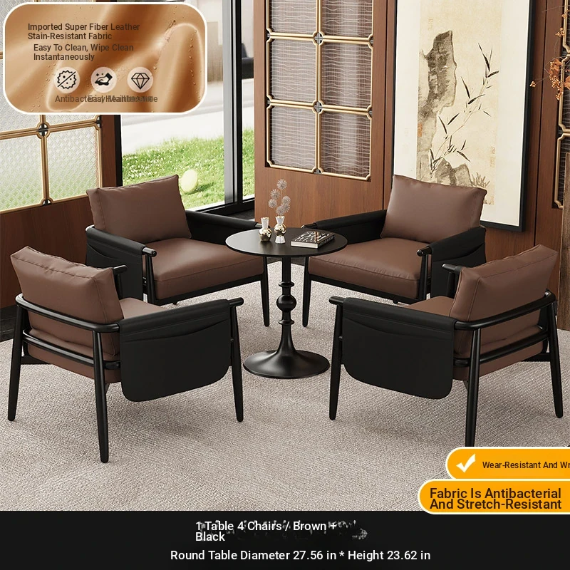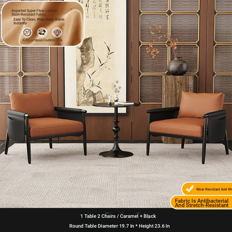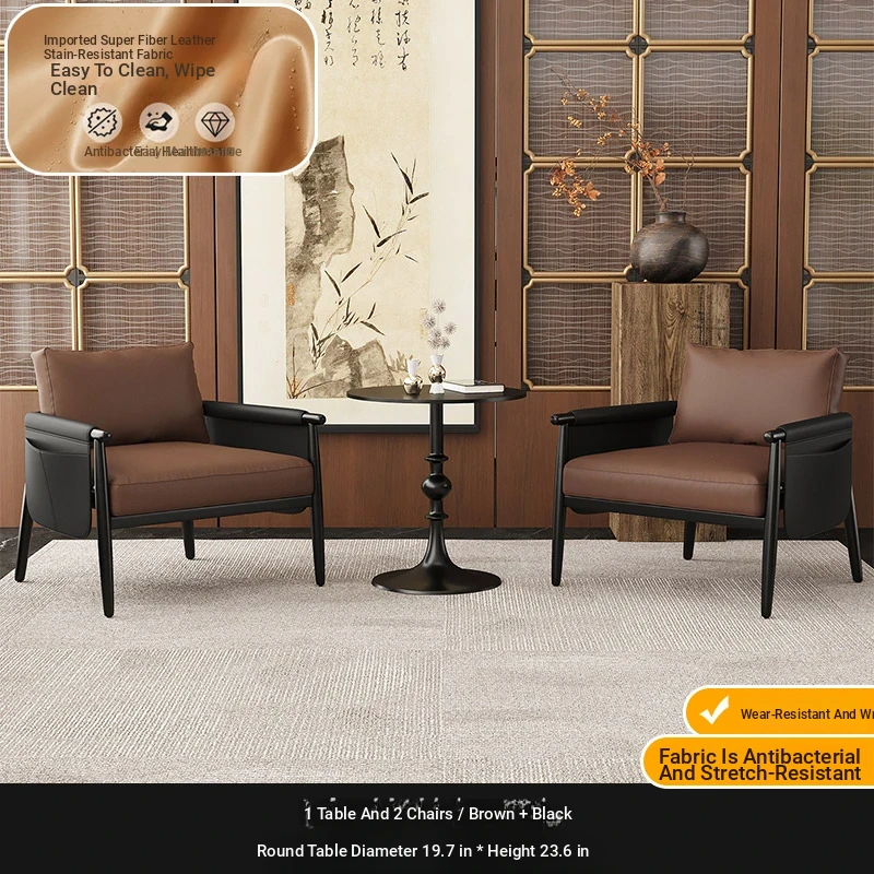 1 Table 2 Chairs "Brown + black" + Round Table 19.69in