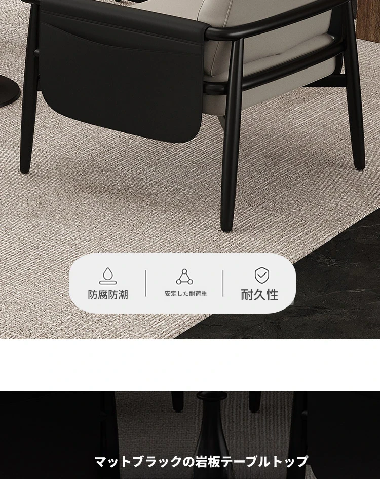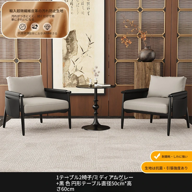 1卓2椅子【ミ灰+黒色】+円卓50cm