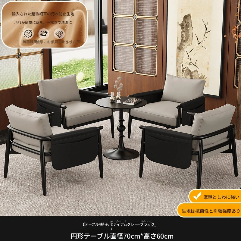 1卓4椅子【ミ灰+黒色】+円卓70cm