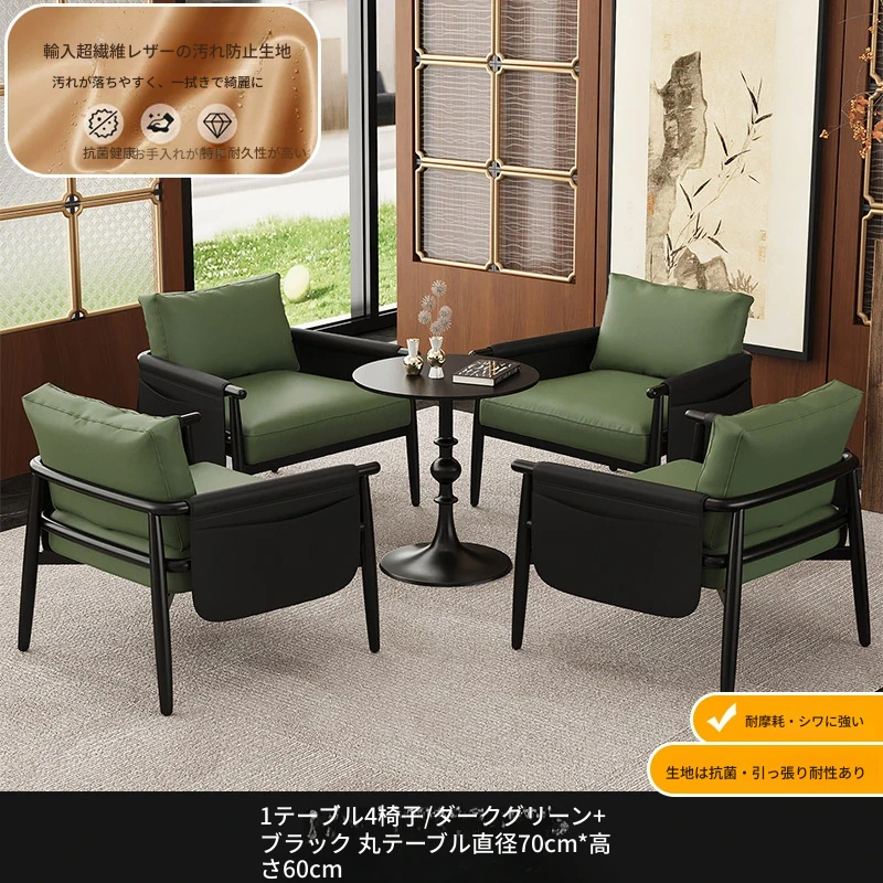 1卓4椅子【墨緑+黒色】+円卓70cm