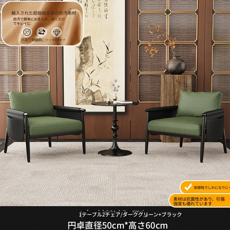 1卓2椅子【墨緑+黒色】+円卓50cm