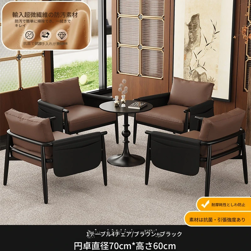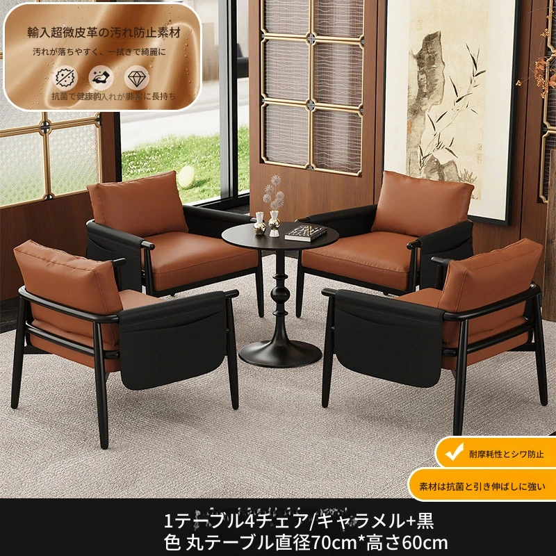 1卓4椅子【キャラメル+黒色】+円卓70cm