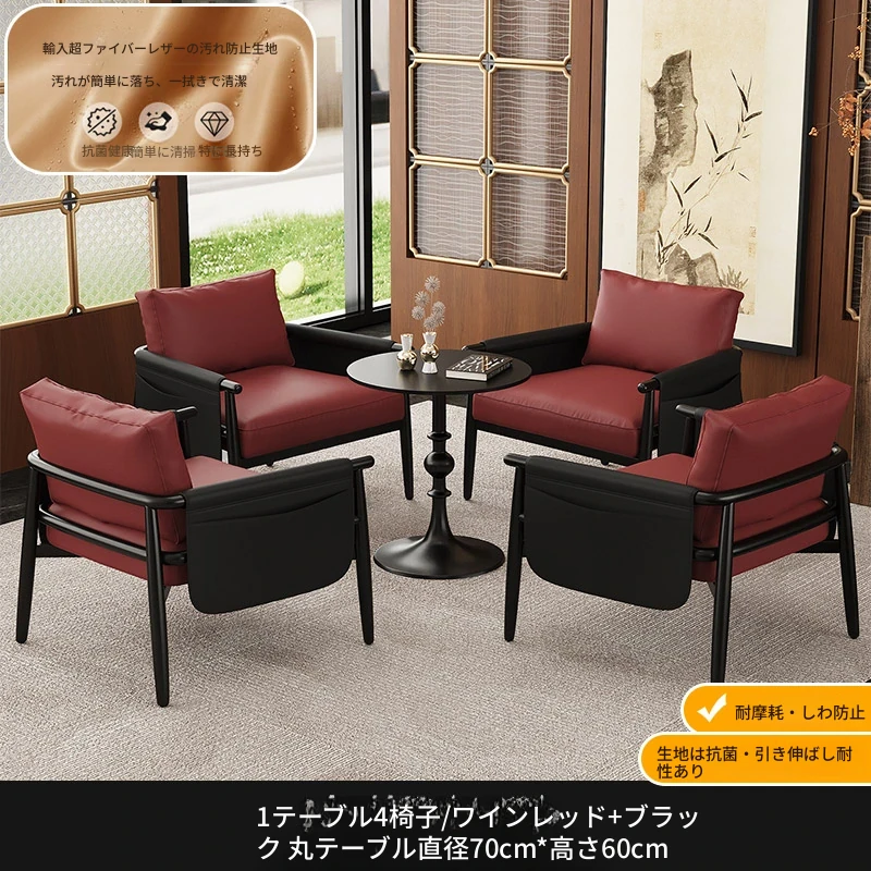1卓4椅子【ワインレッド+黒色】+円卓70cm