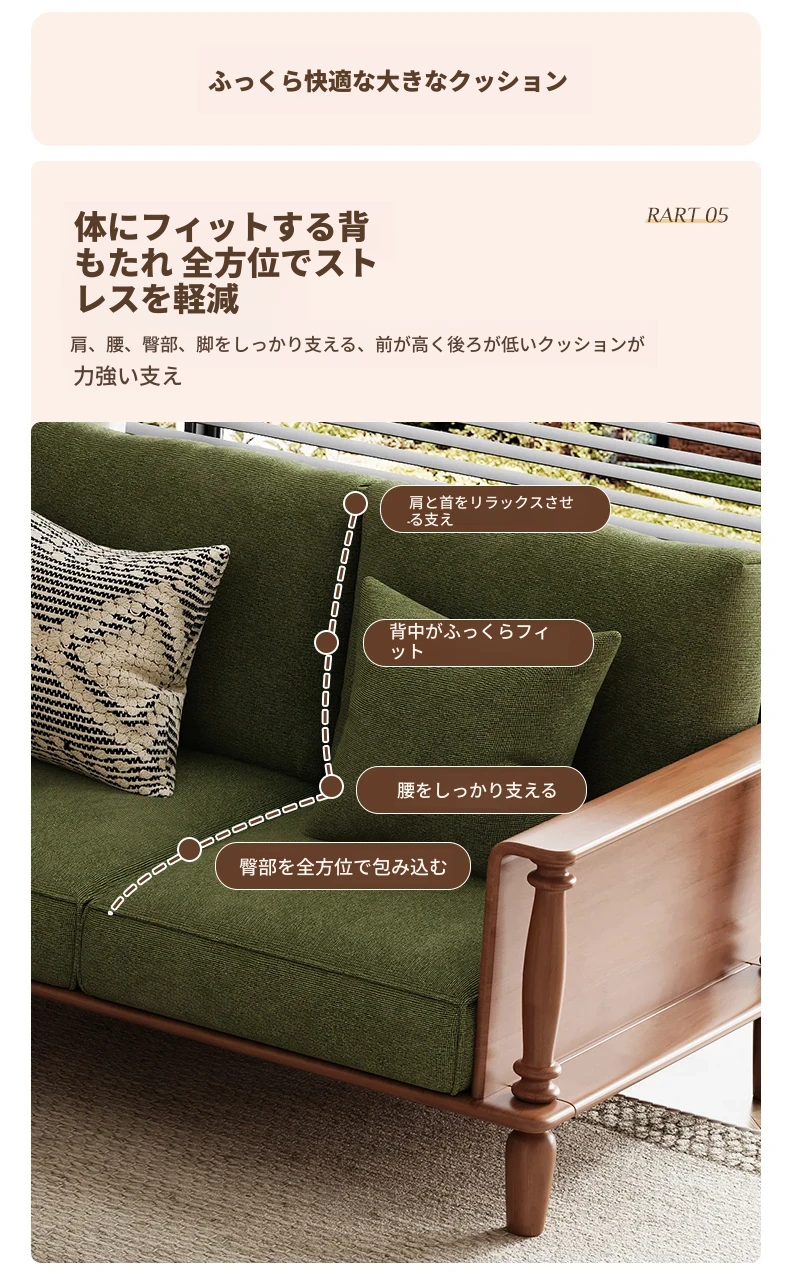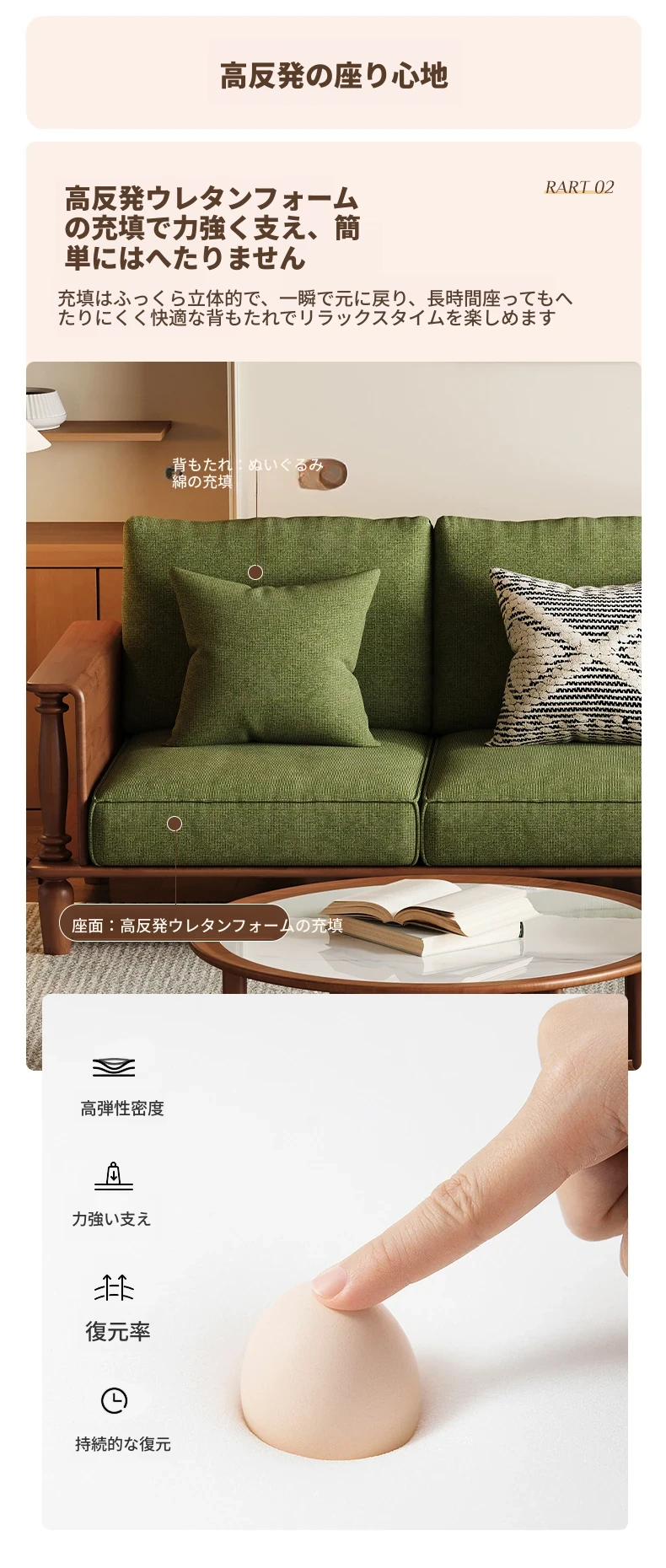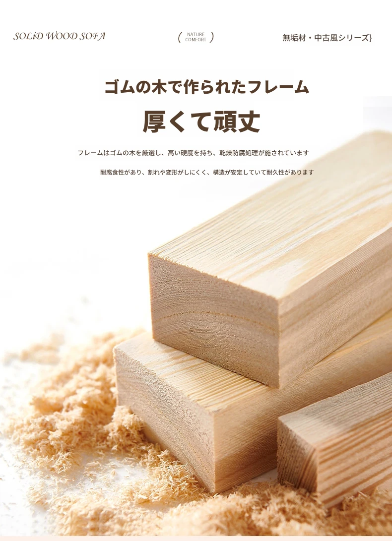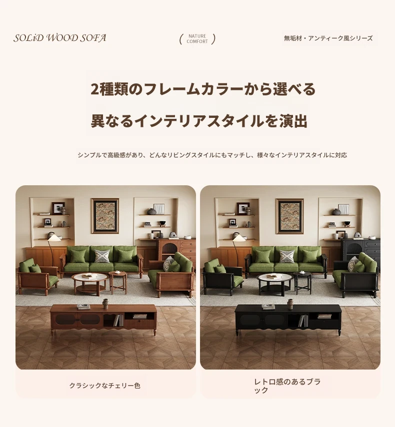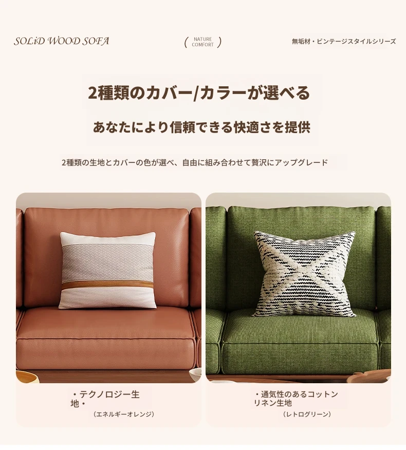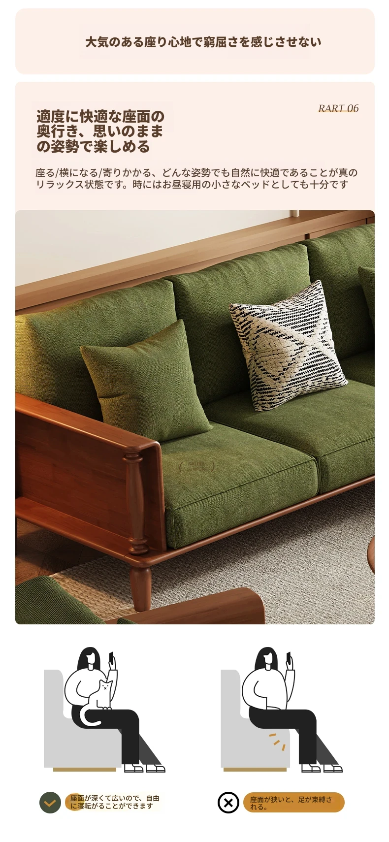 フレンチヴィンテージスタイルの無垢材ソファ - 小さなリビングルームにぴったりな布製ソファ、コーヒーテーブル&テレビキャビネットセットで、優雅な空間を演出!