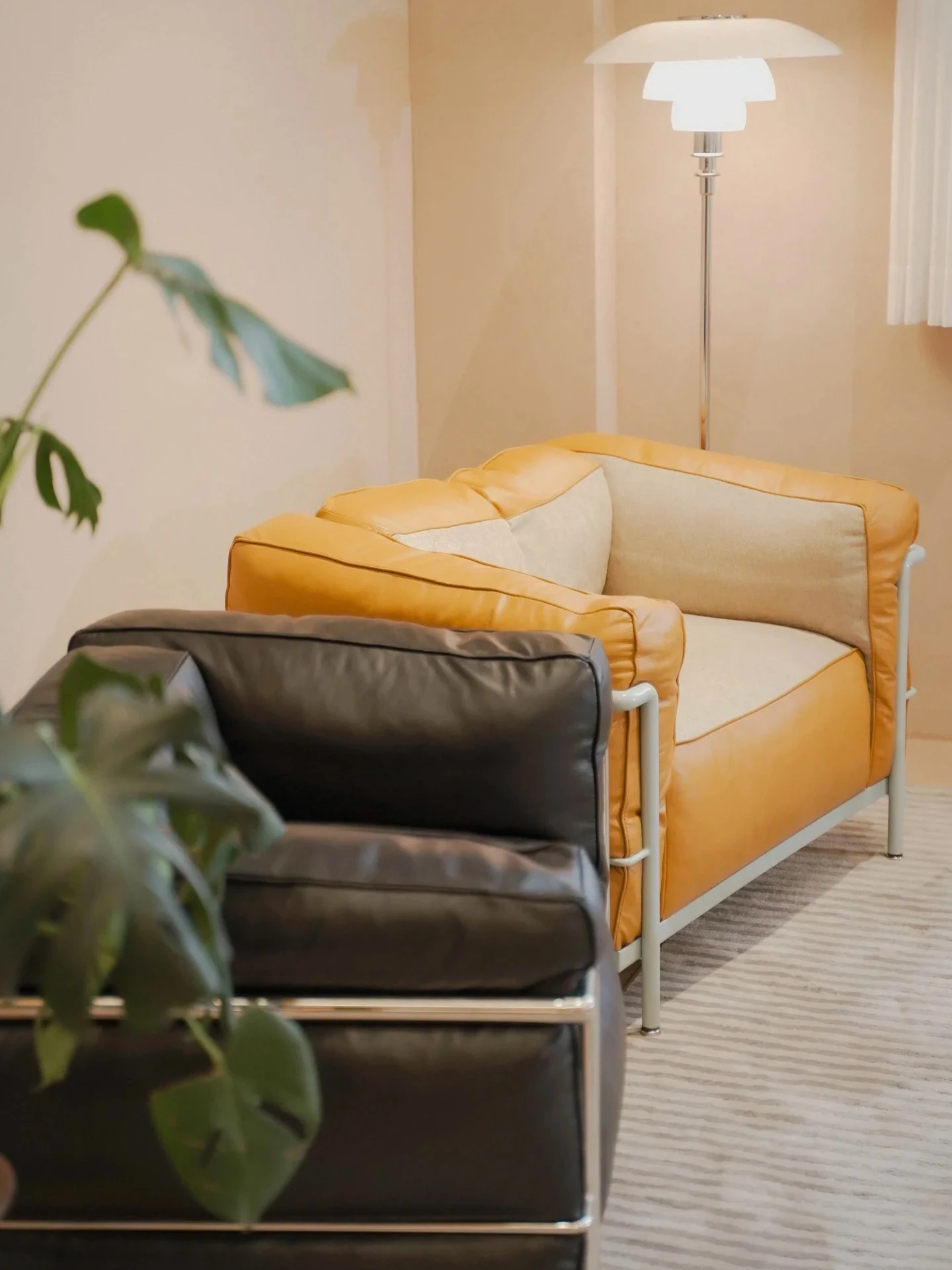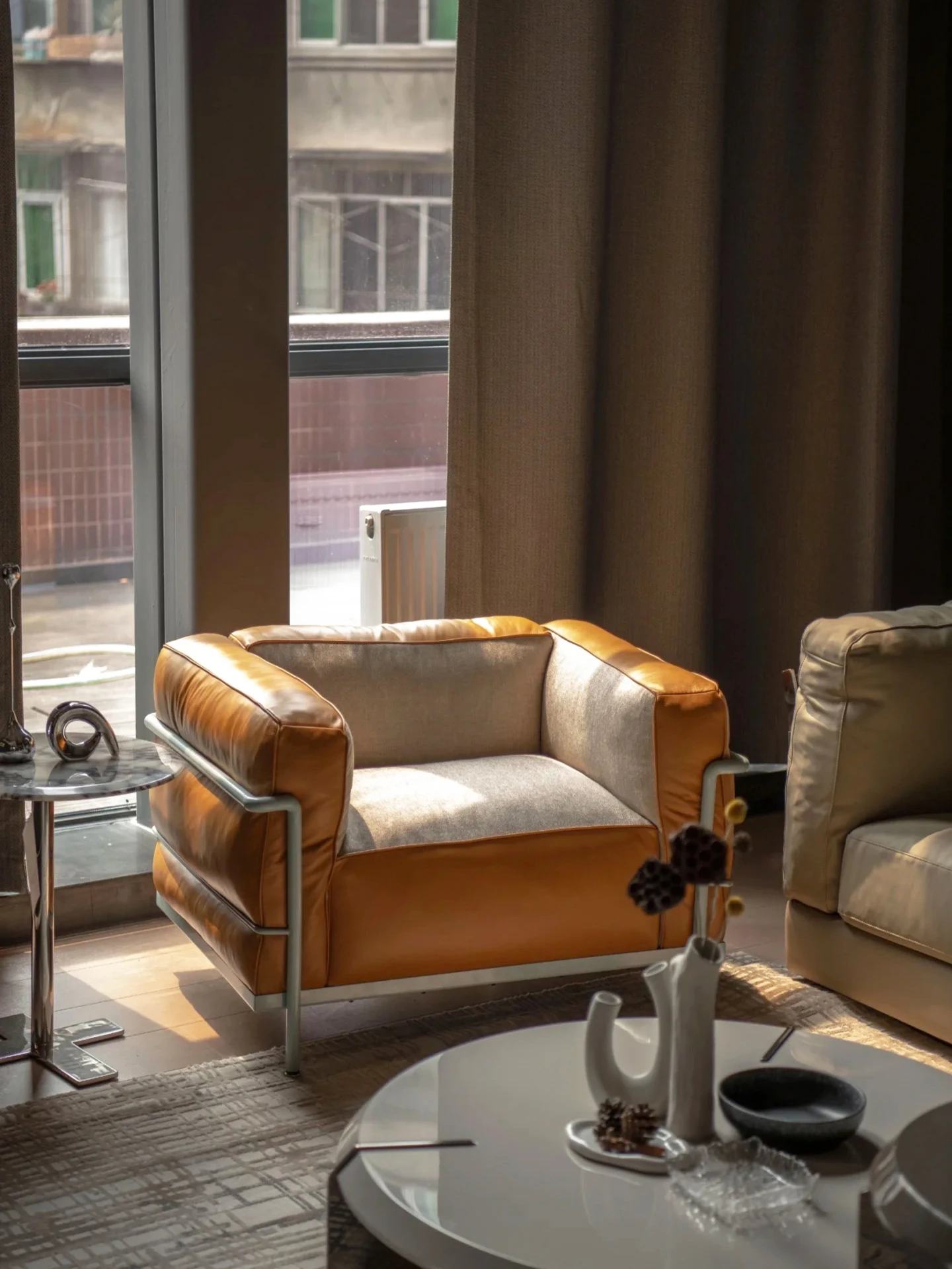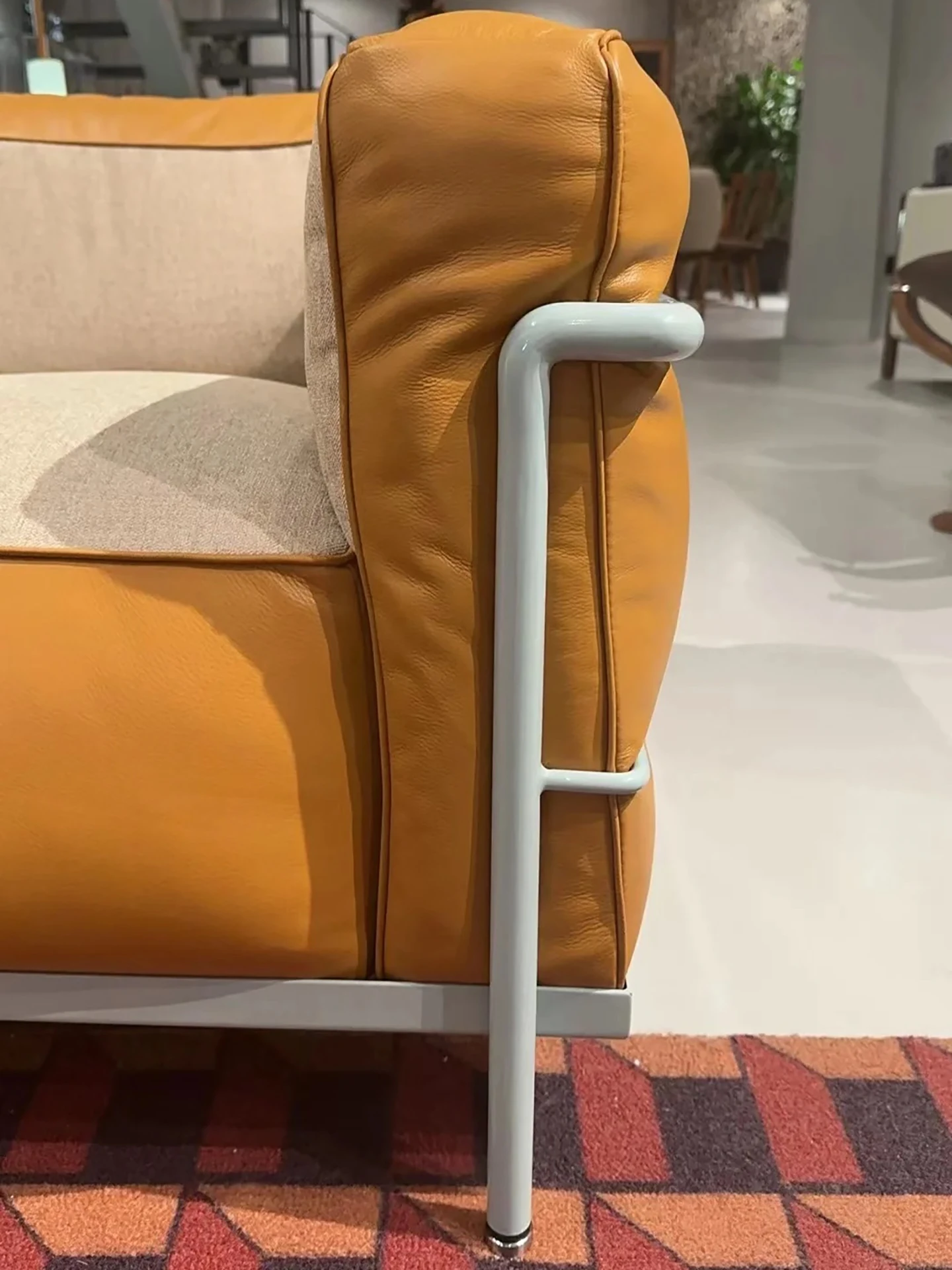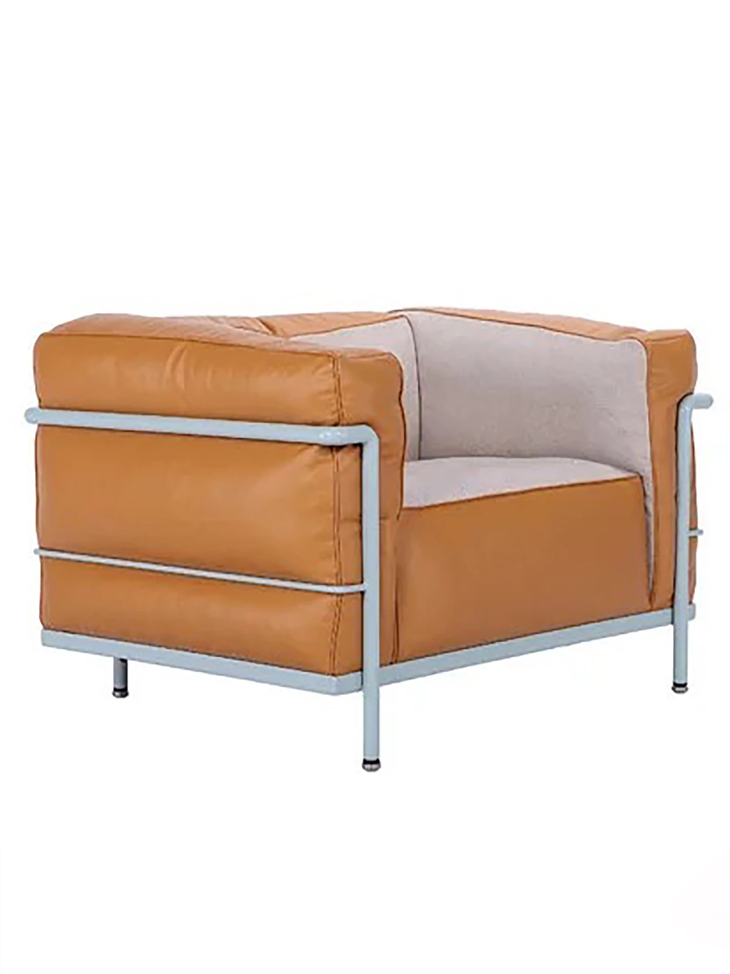 ドーパミンカラー - しっかりとした作りのLC3 - カッシーナYシリーズの牛革エルメスオレンジ + ベルギー輸入のコットンリネンミルクティーアーモンドクッション 原版1対1再現の柔らかさと快適さ