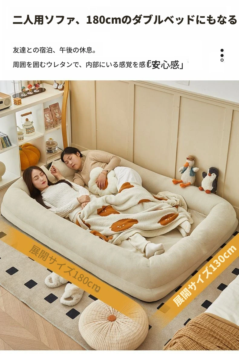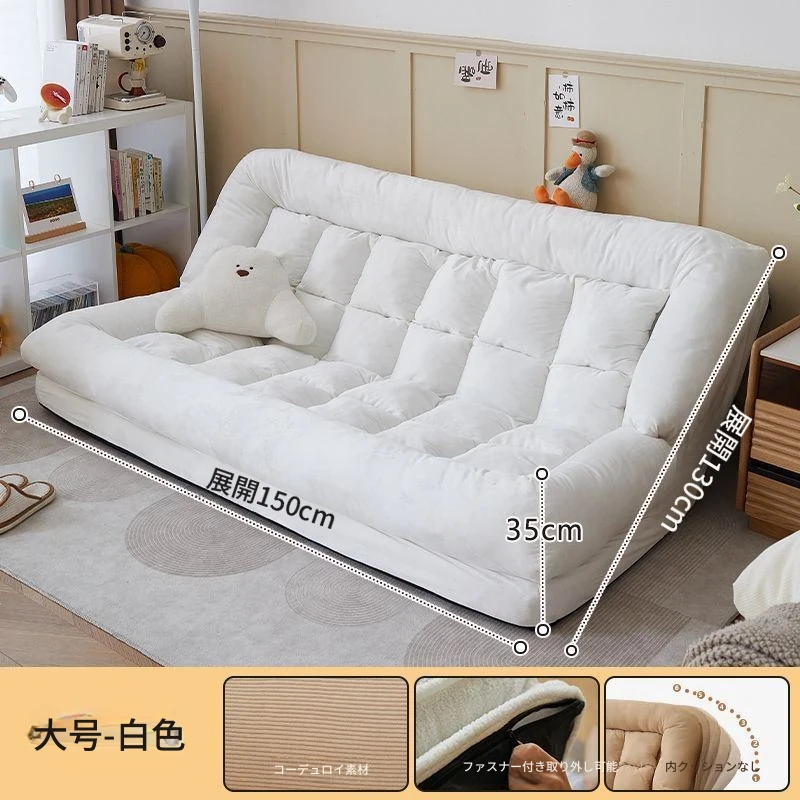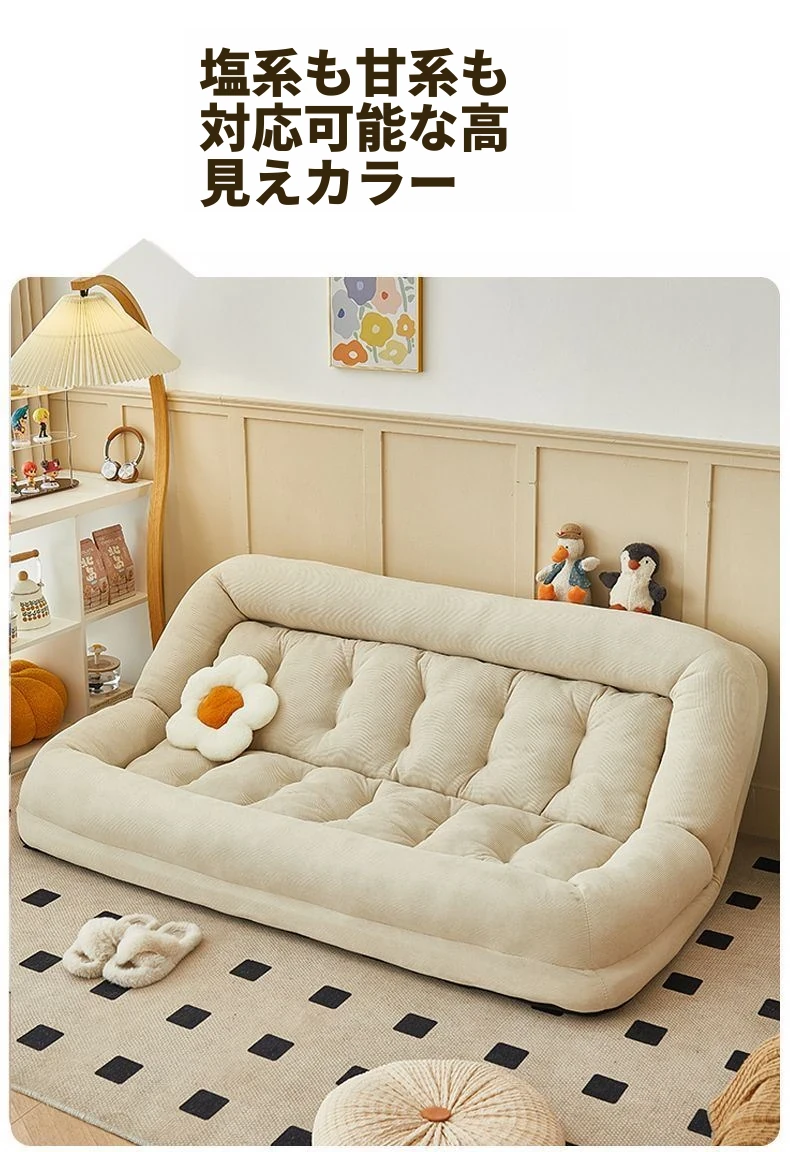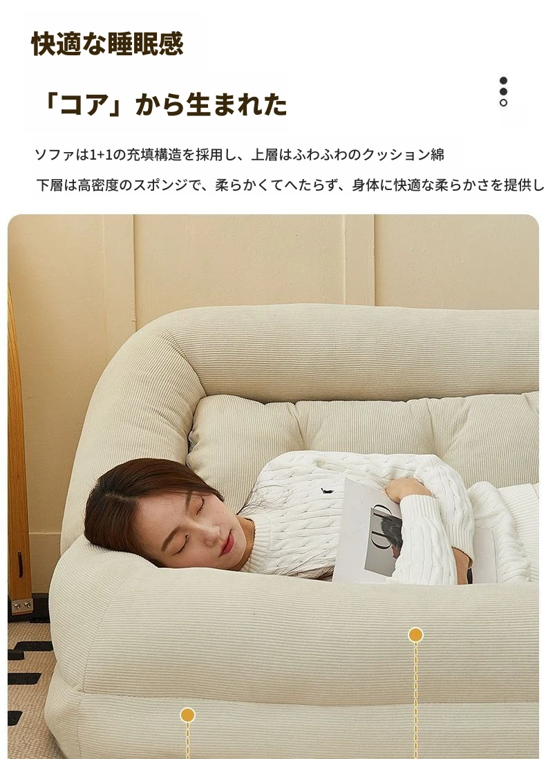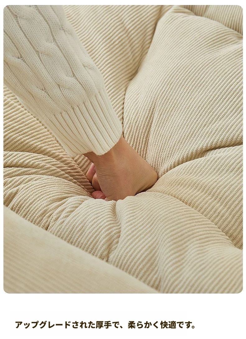 二人用ソファ - コーデュロイ - ホワイト 180*130cm【クッション付き*2】