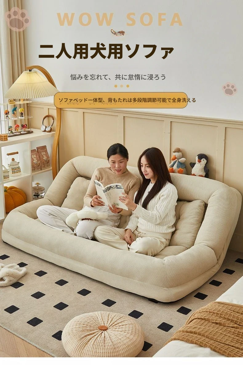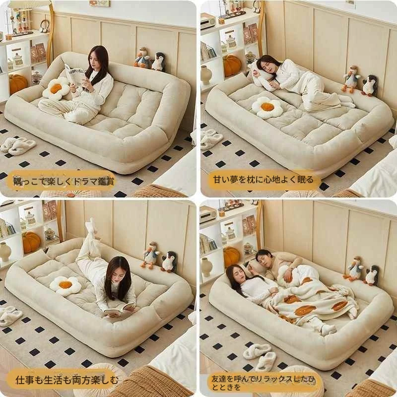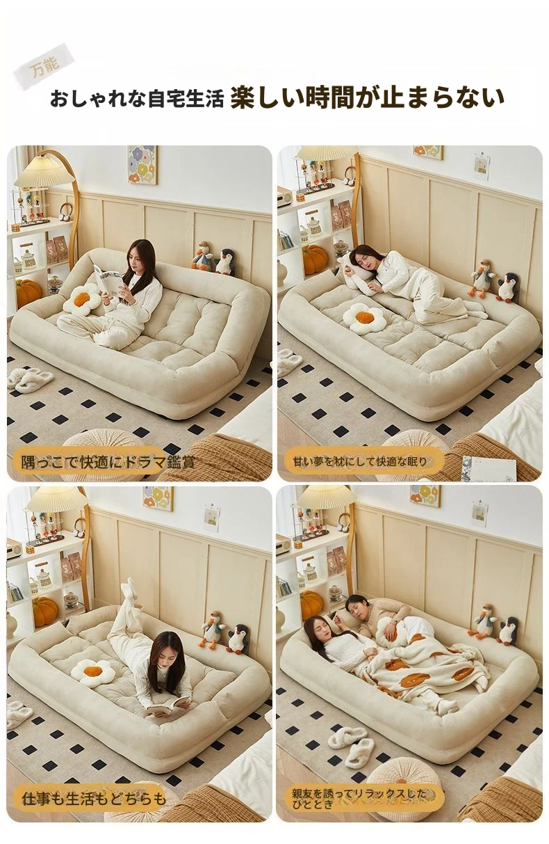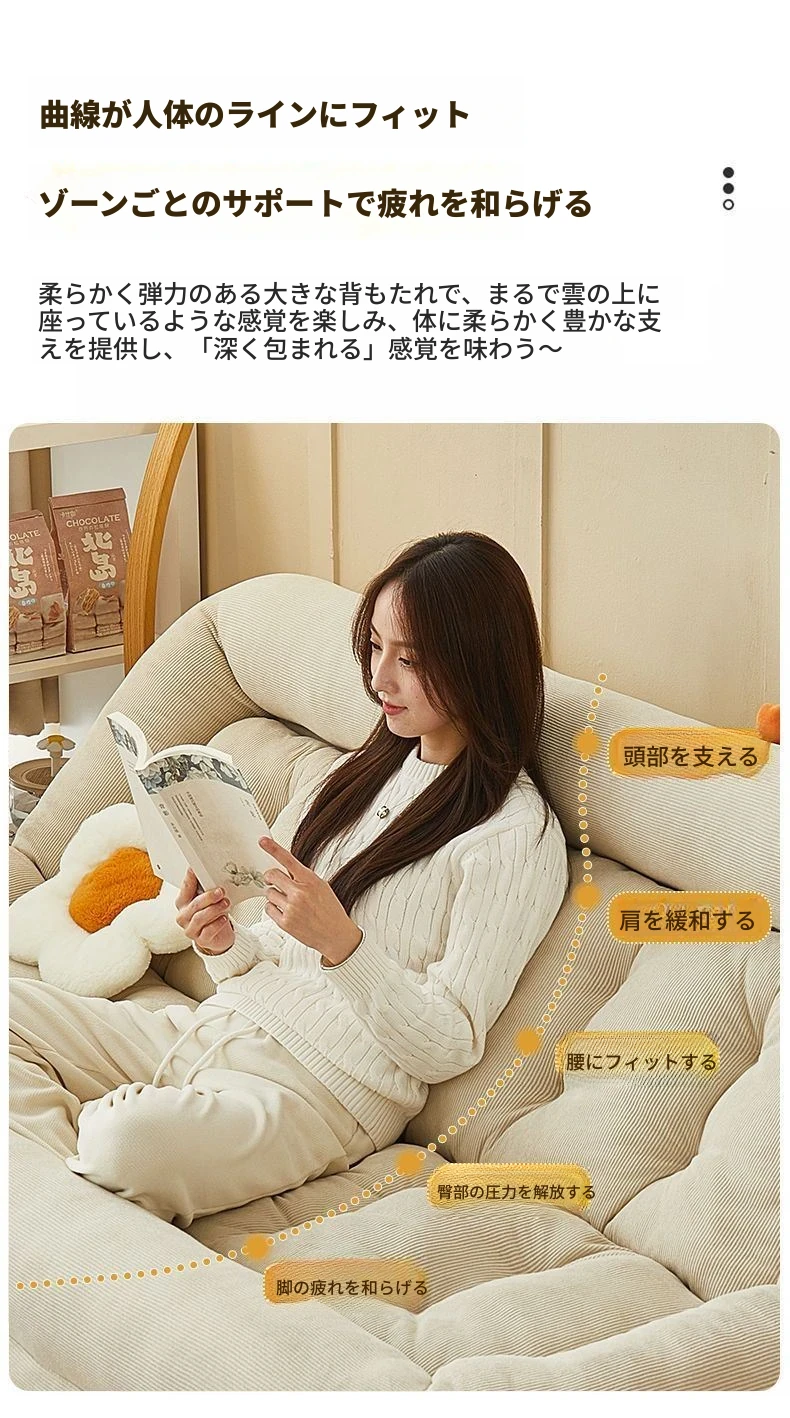 二人用ソファ - コーデュロイ - ホワイト 180*130cm【クッション付き*2】