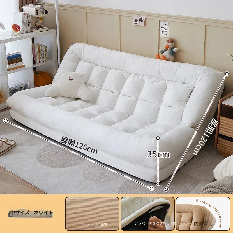 二人用ソファ - コーデュロイ - ホワイト 120*120cm【クッション付き*2】
