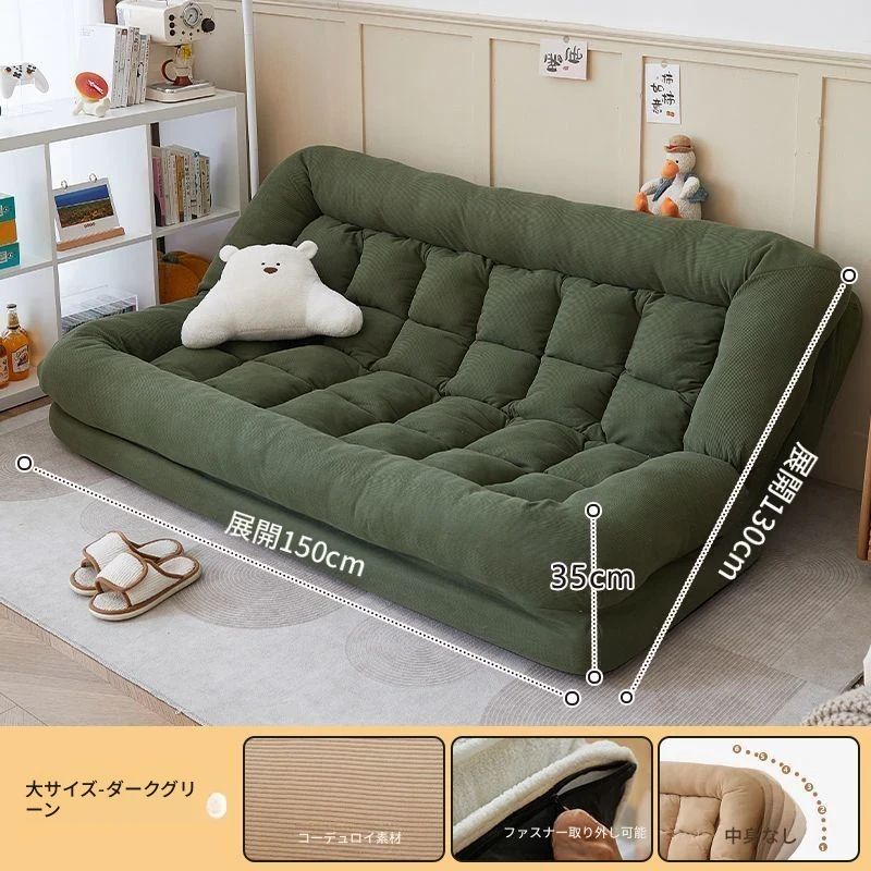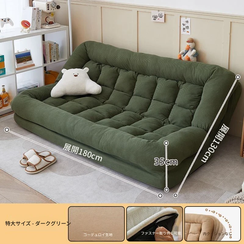 二人用ソファ - コーデュロイ - ダークグリーン 180*130cm【クッション付き*2】