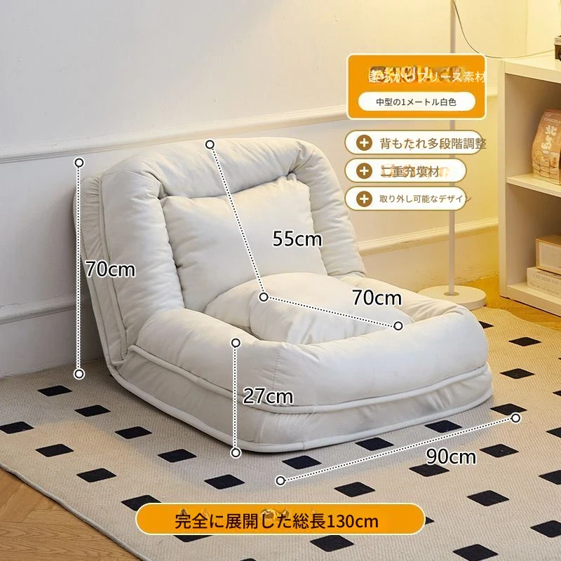 一人用ソファ - ベロア - ホワイト 130*90cm【クッション付き*2】