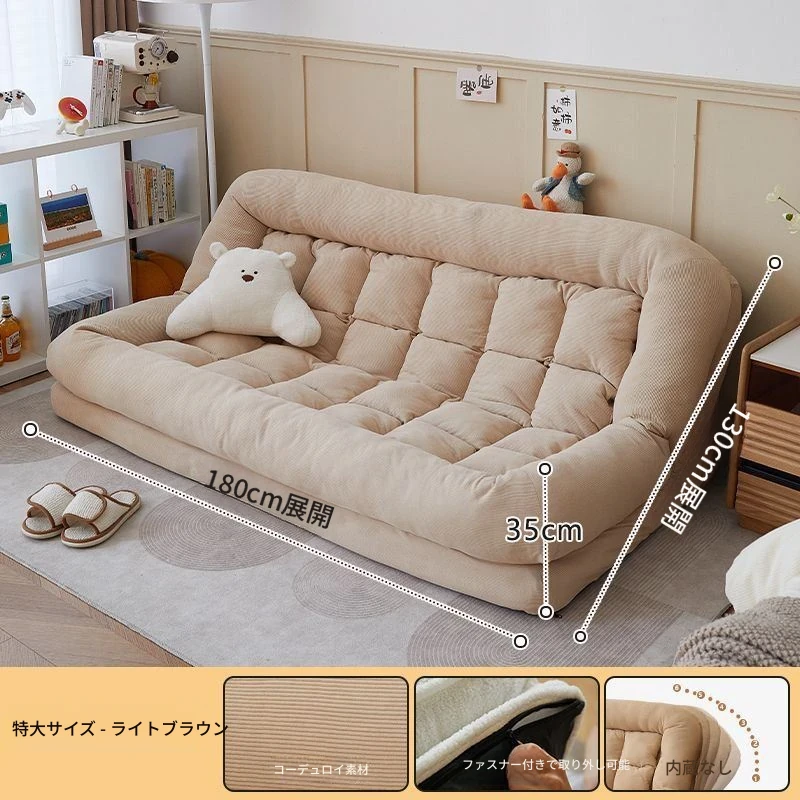 二人用ソファ - コーデュロイ - ライトブラウン 180*130cm【クッション付き*2】