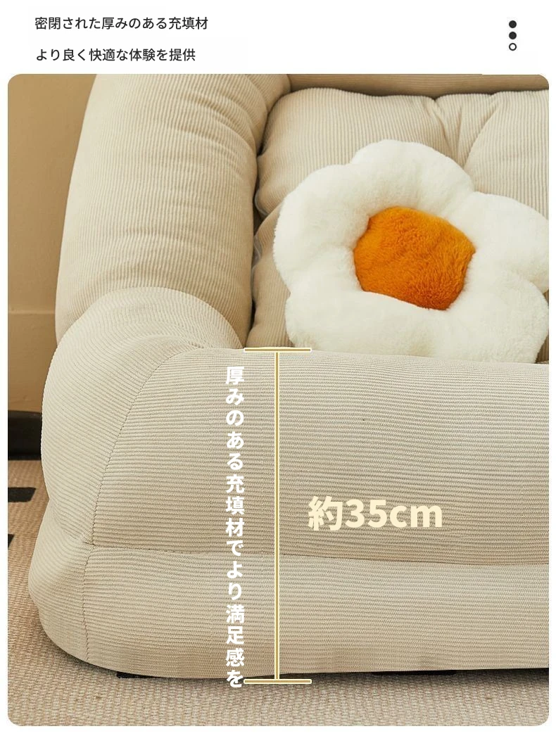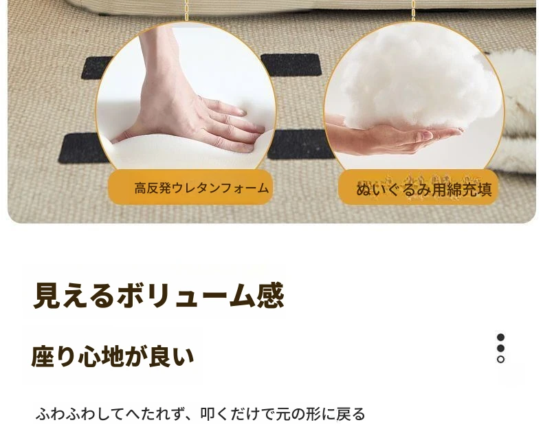 二人用ソファ - コーデュロイ - ライトブラウン 120*120cm【クッション付き*2】