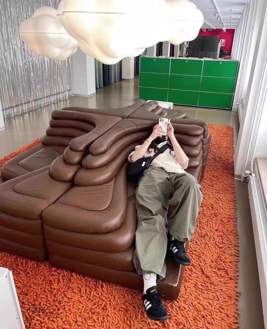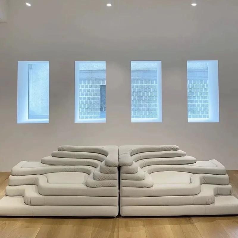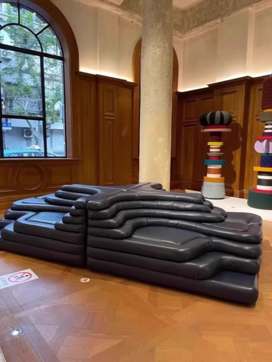 イタリアンラグジュアリー畑スタイルデザインの本革ソファ!個性的でクリエイティブなリビングルーム向け異形ソファ、ファッション店舗にも最適!あなたの空間を魅力的に演出します!