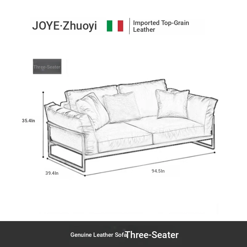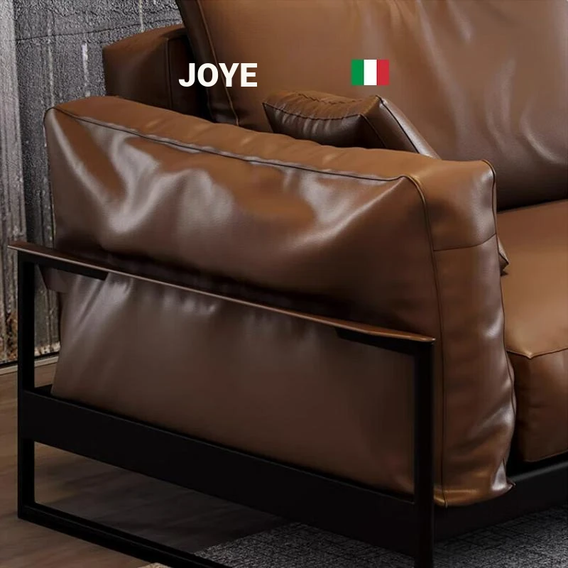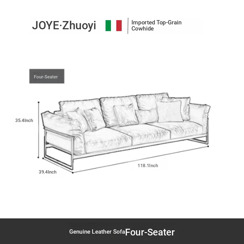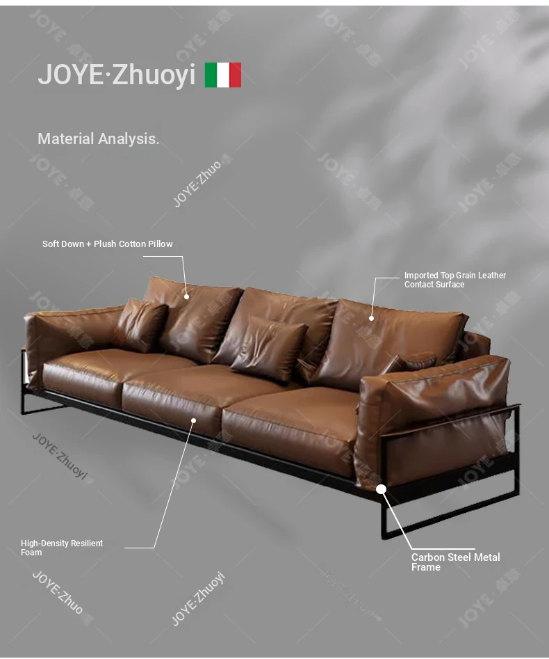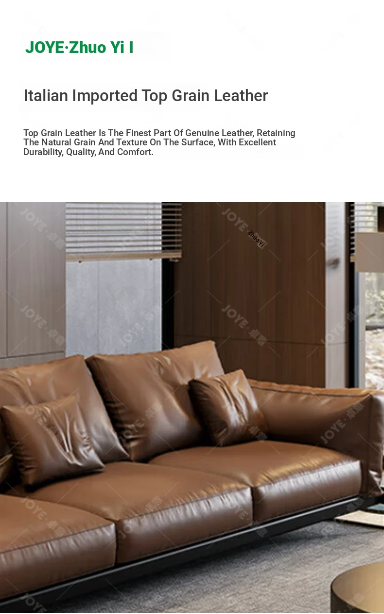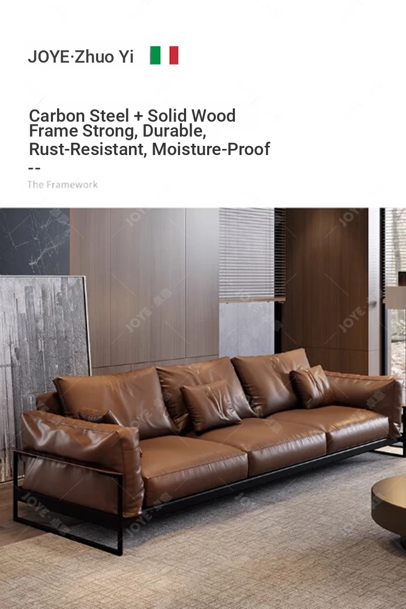 Italian Minimalist Genuine Leather Sofa - Top Grain Cowhide for Office and Living Room, Stylish and Simple Design with Steel Frame, Perfect for Home Use