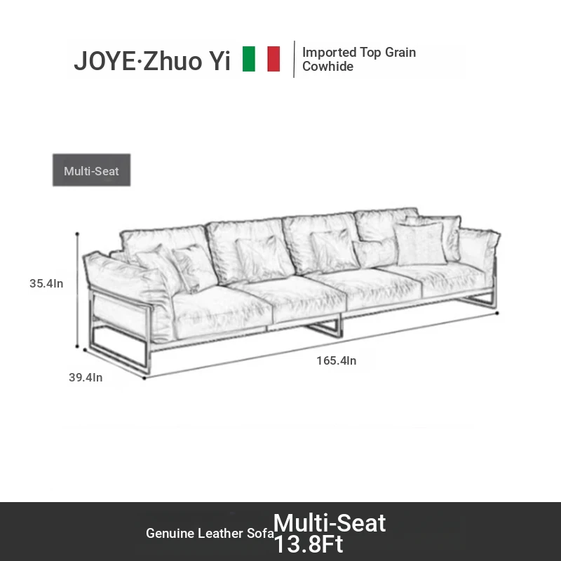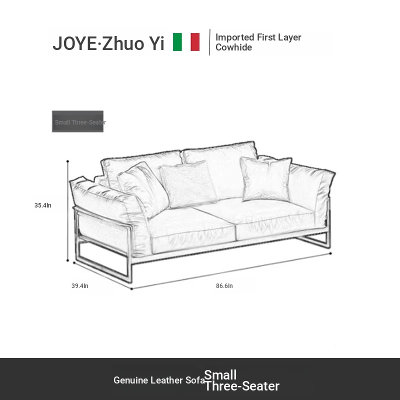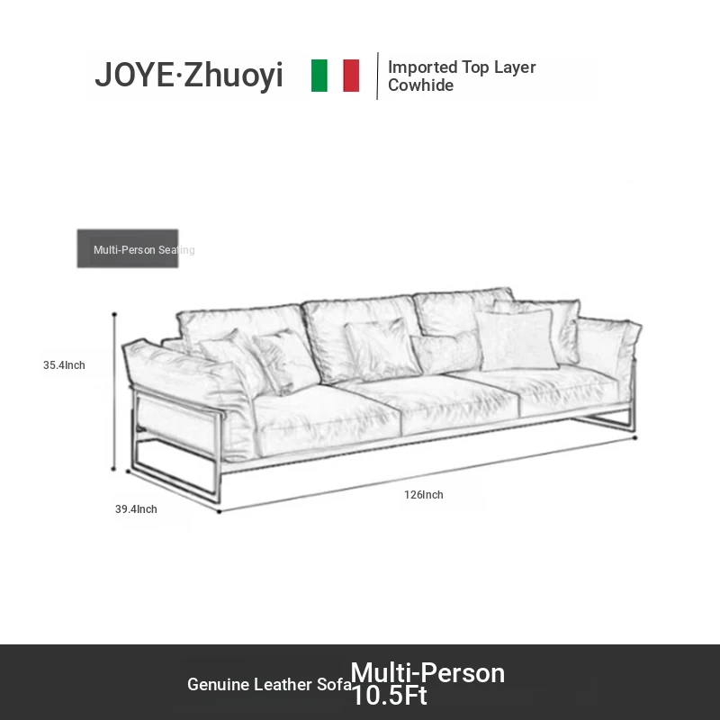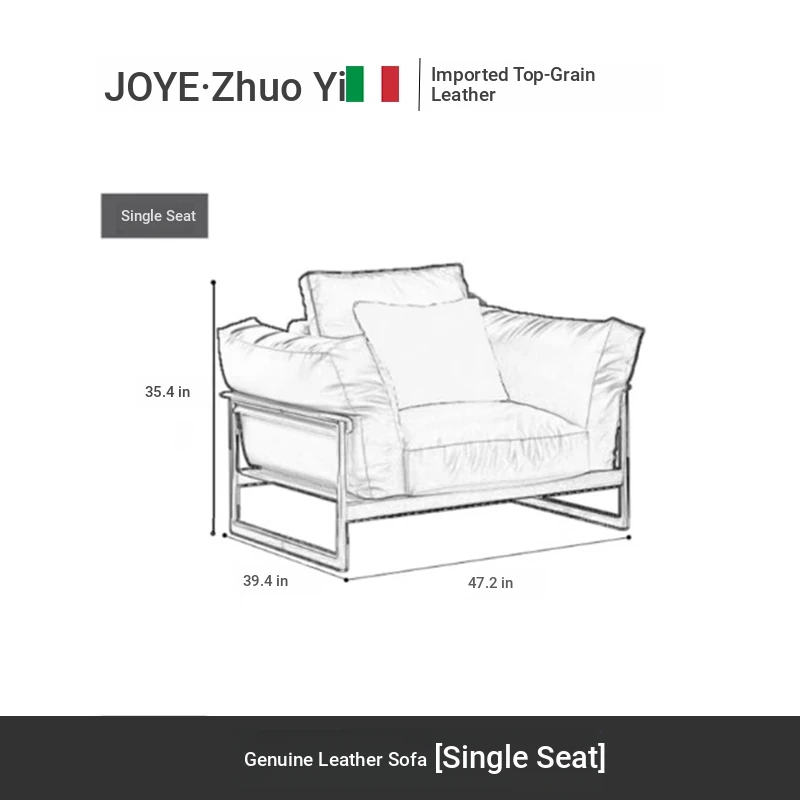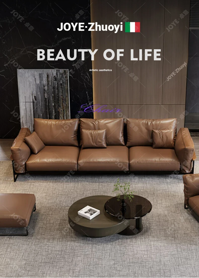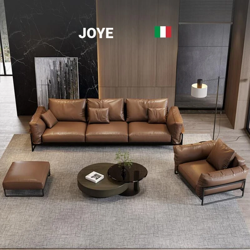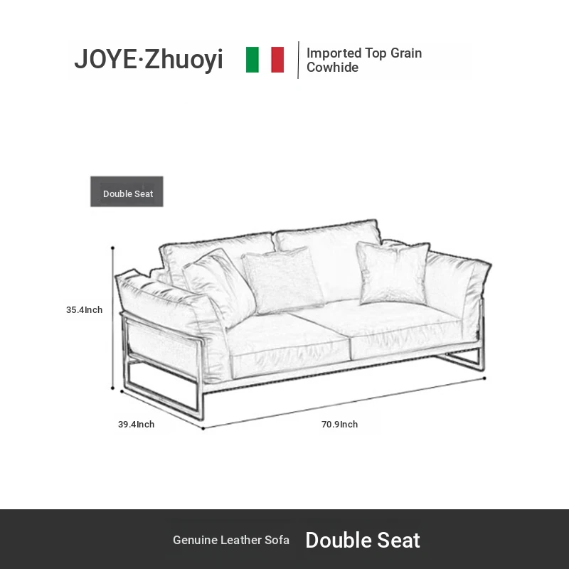 Italian Minimalist Genuine Leather Sofa - Top Grain Cowhide for Office and Living Room, Stylish and Simple Design with Steel Frame, Perfect for Home Use