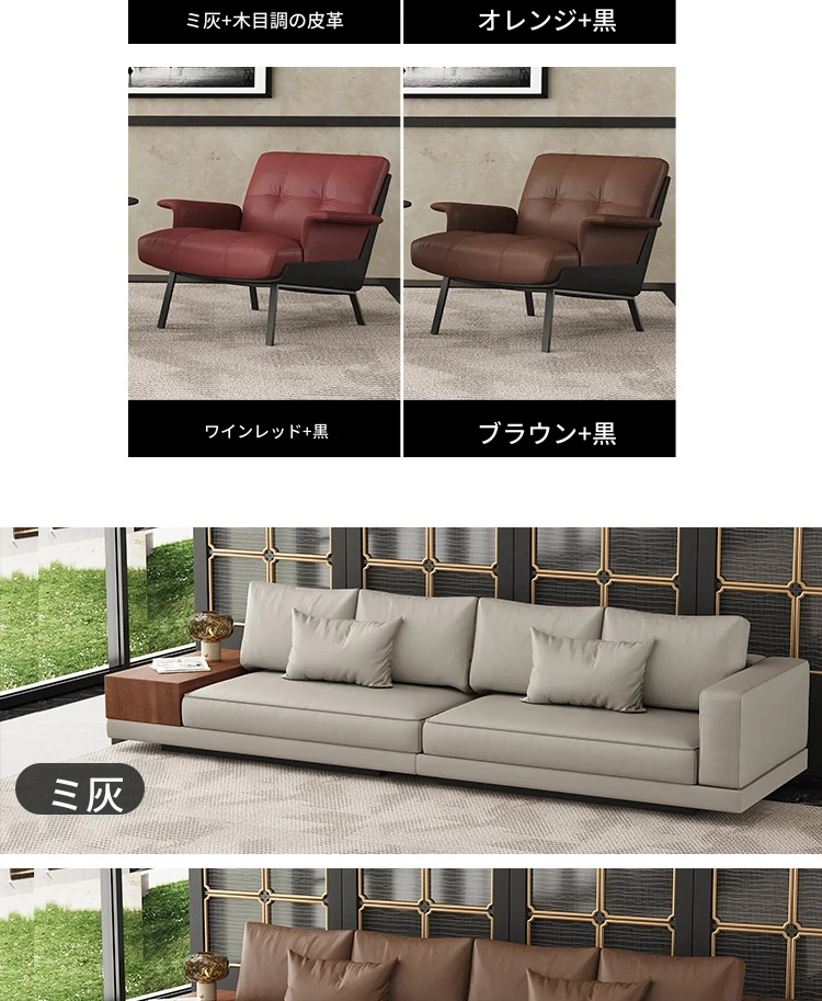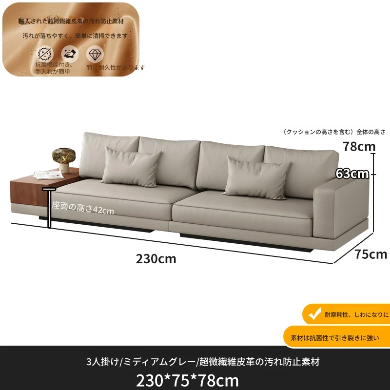 三人掛け:米灰*超繊維皮革汚れ防止生地