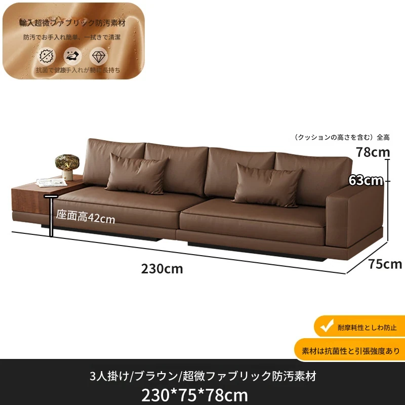三人掛け:茶色*超繊維皮革汚れ防止生地