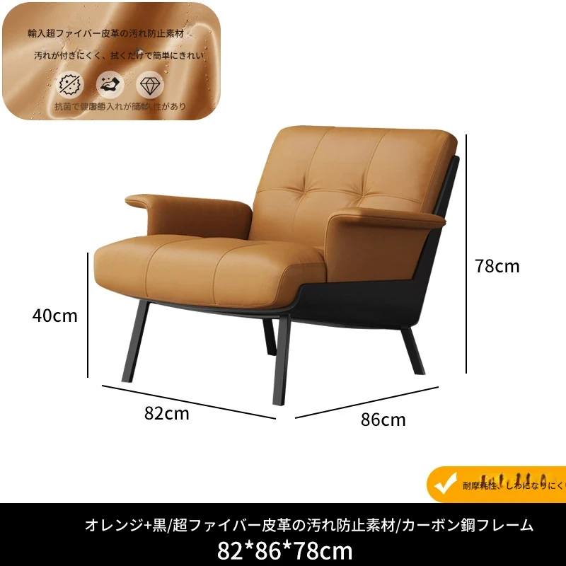 オレンジ+黒色/超繊維皮革汚れ防止生地/カーボンスチール