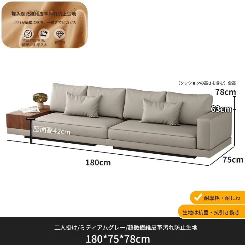 二人掛け:米灰*超繊維皮革汚れ防止生地