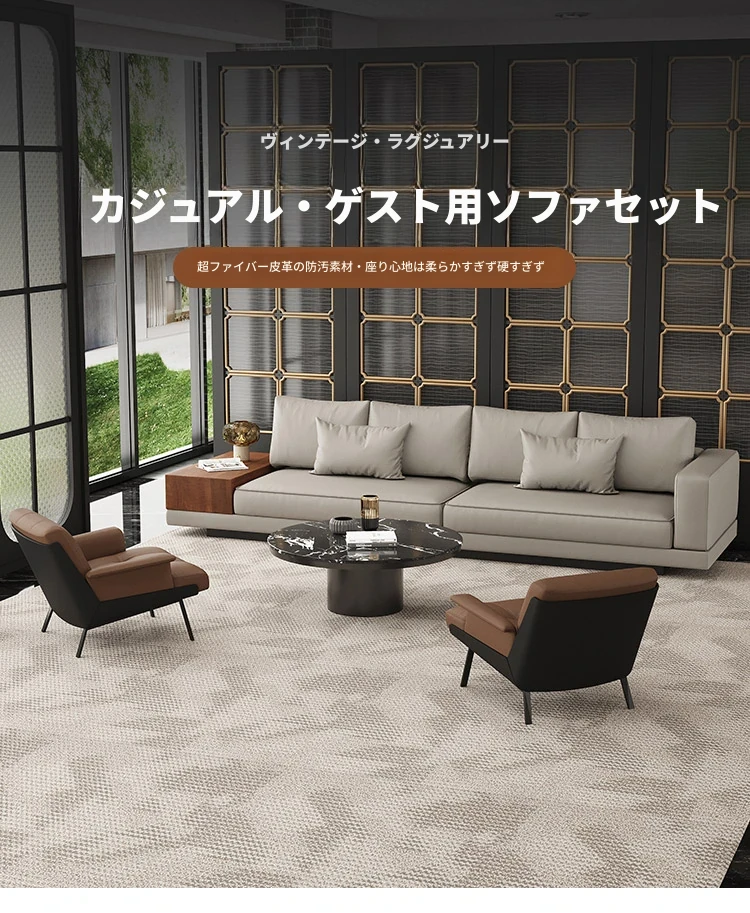 イタリアンミニマリストホテルロビー用リラクゼーションエリアソファセット - VIPルームとモデルルームに最適なダブル&シングルソファのコンビネーション!洗練されたデザインで、ゲストを魅了します。