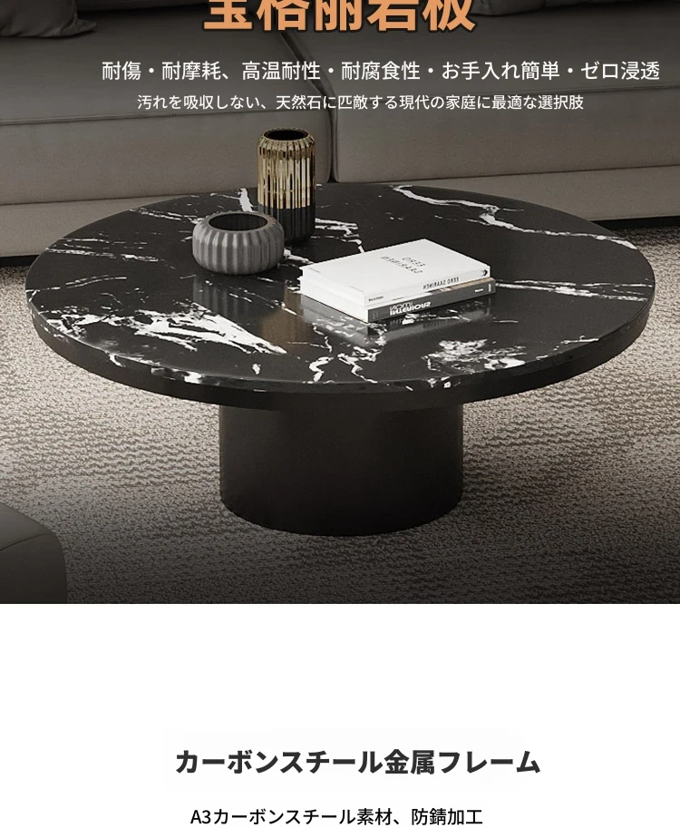 センターテーブル:80*45cm【ボッテガ・ヴェネタ・ブラック岩板天板】