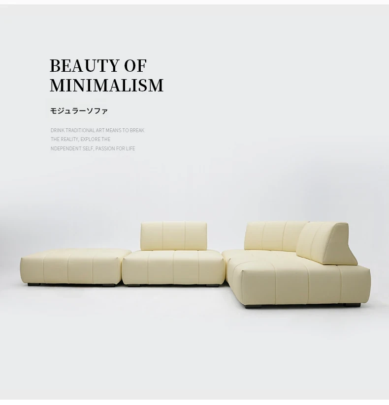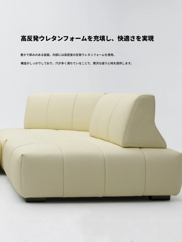 イタリアンミニマルデザインの高級本革ソファー。贅沢な豆腐ブロックモジュールで、リビングをスタイリッシュに演出。角型に組み合わせ可能、快適さと美しさを兼ね備えた本物の革ソファです。