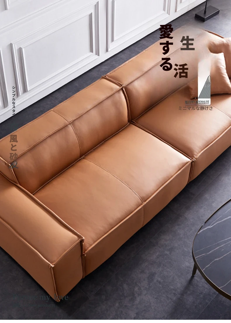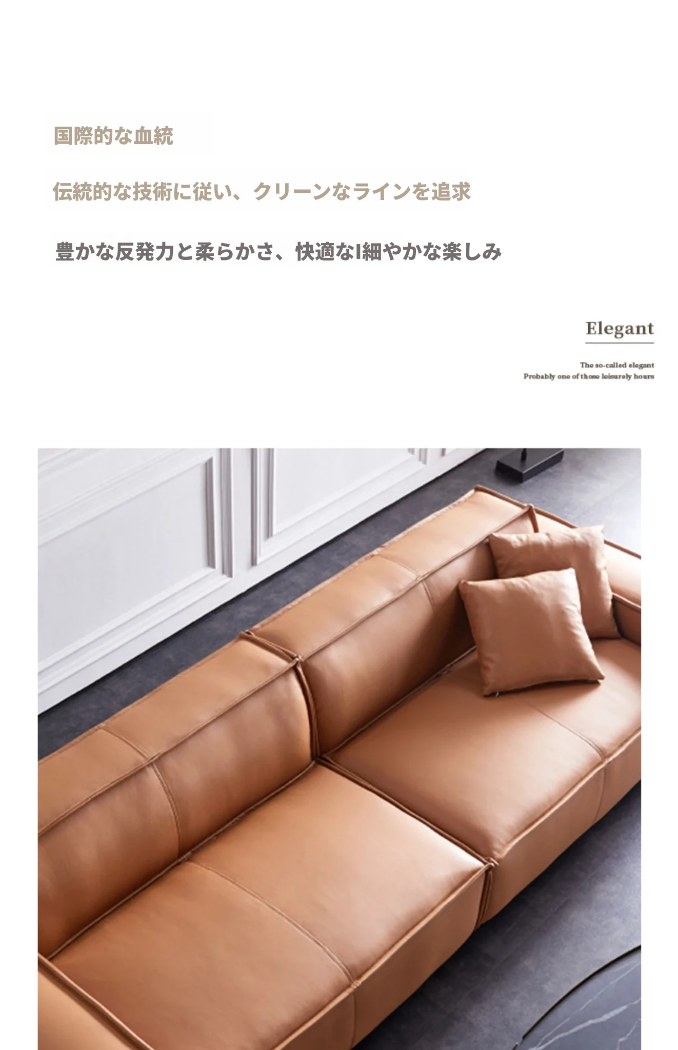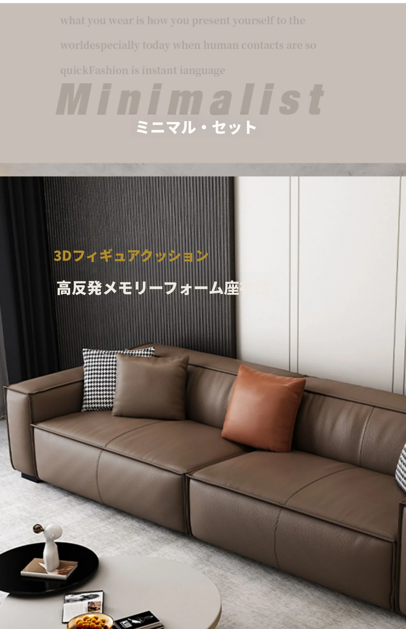 イタリアンミニマリズムのリビングソファ!小型住宅にぴったりなキューブ型トーフブロックの組み合わせ。シンプルでモダンな北欧スタイルのレザーソファ、すぐに整えられるセットです。おしゃれな空間を演出します!