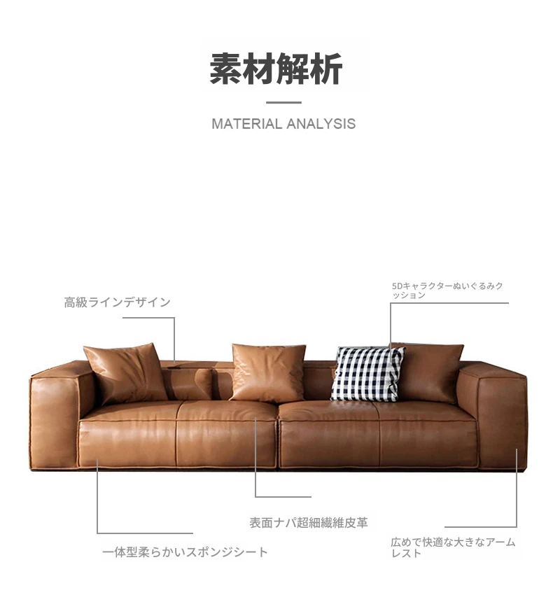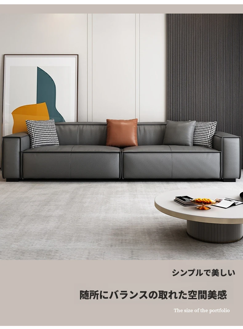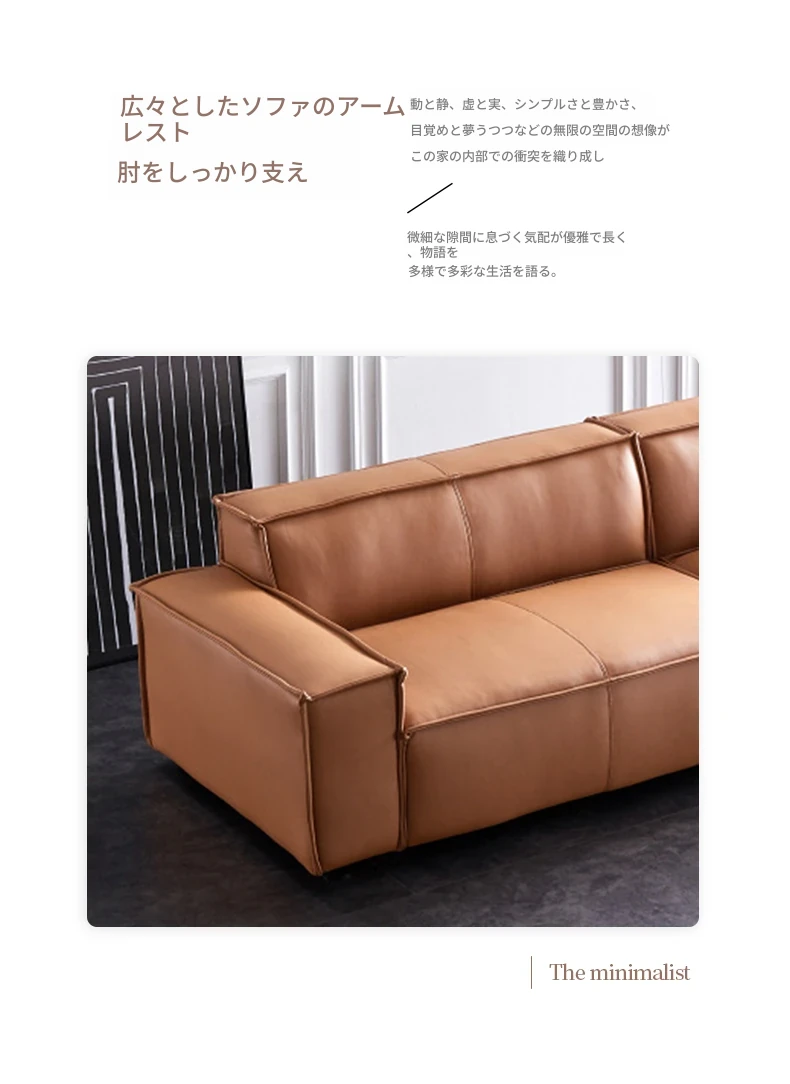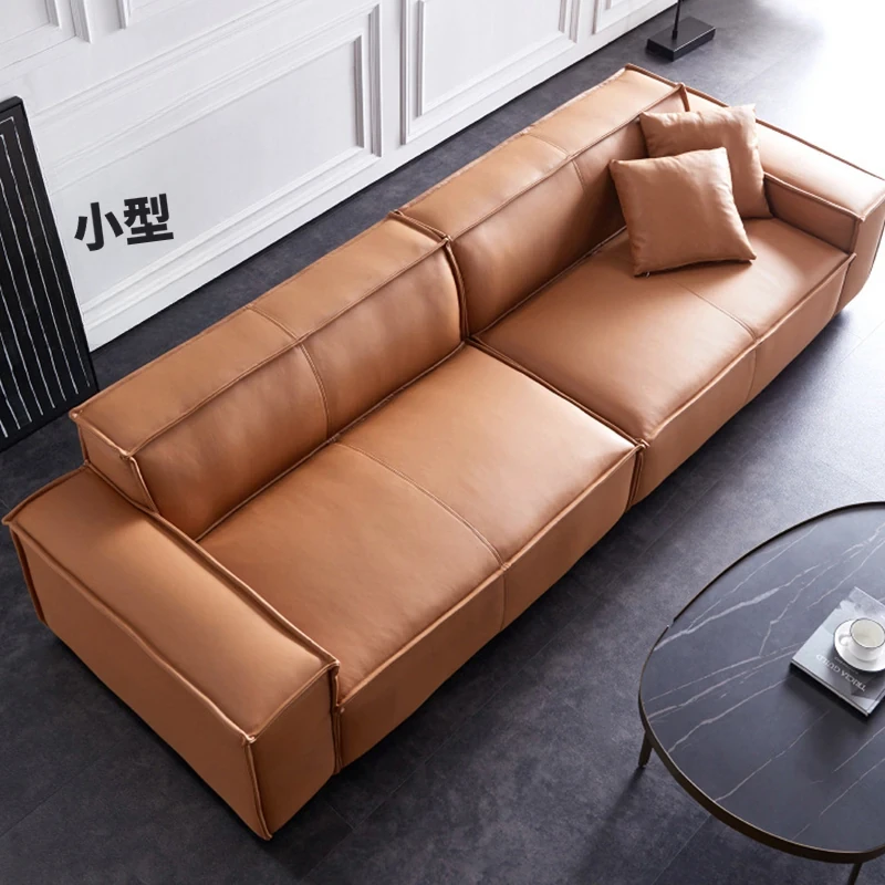イタリアンミニマリズムのリビングソファ!小型住宅にぴったりなキューブ型トーフブロックの組み合わせ。シンプルでモダンな北欧スタイルのレザーソファ、すぐに整えられるセットです。おしゃれな空間を演出します!