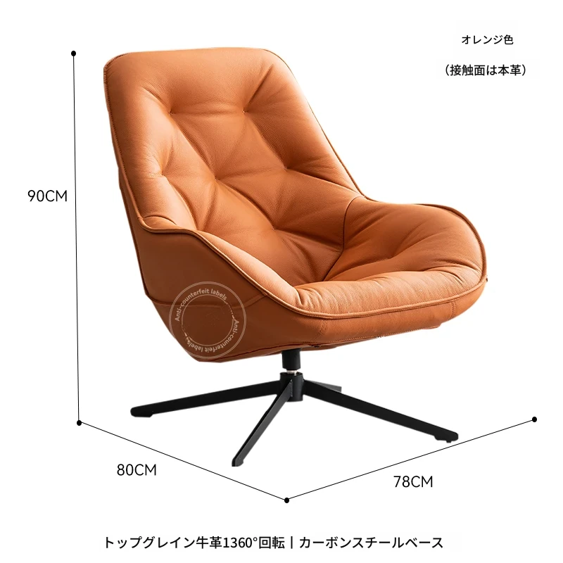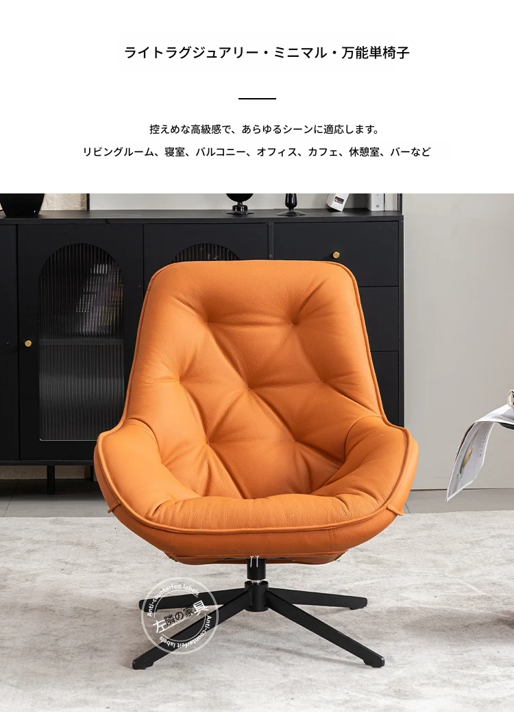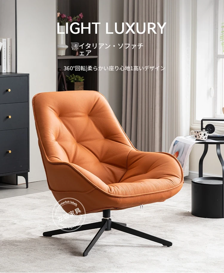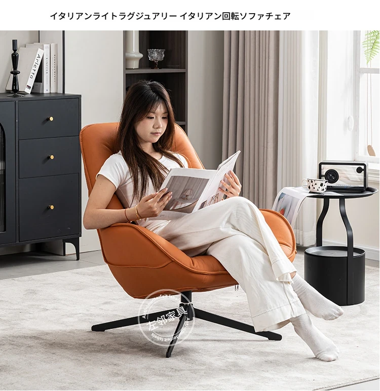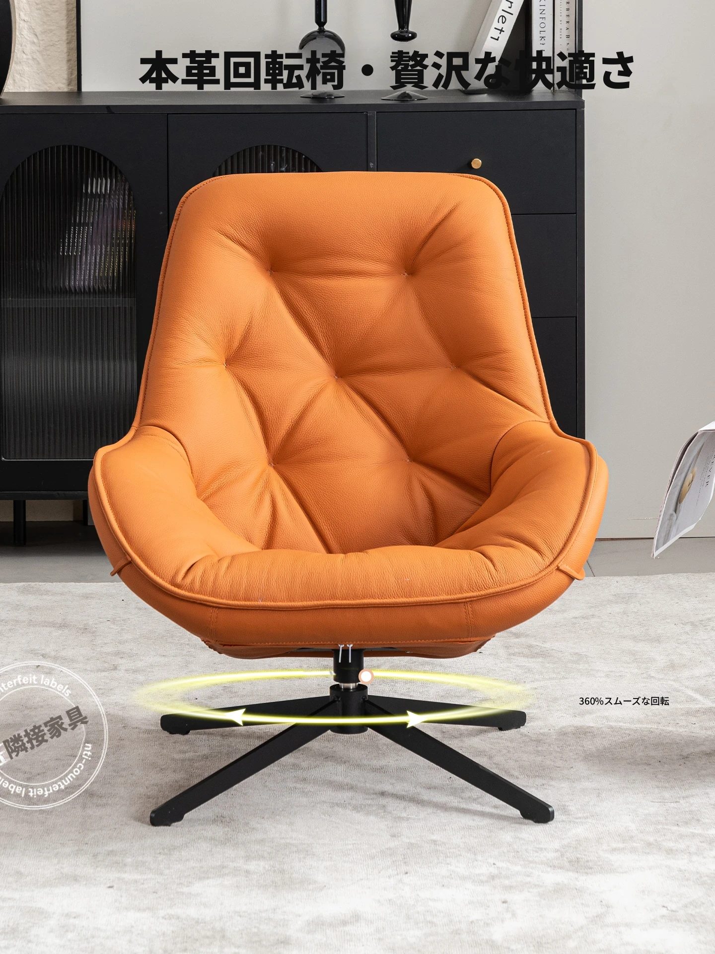 イタリアンスタイルの回転式一人掛けソファチェア|本革製のラグジュアリーなリラックスチェア|家庭用・バルコニーにも最適な快適な一脚ソファ!