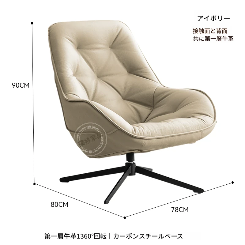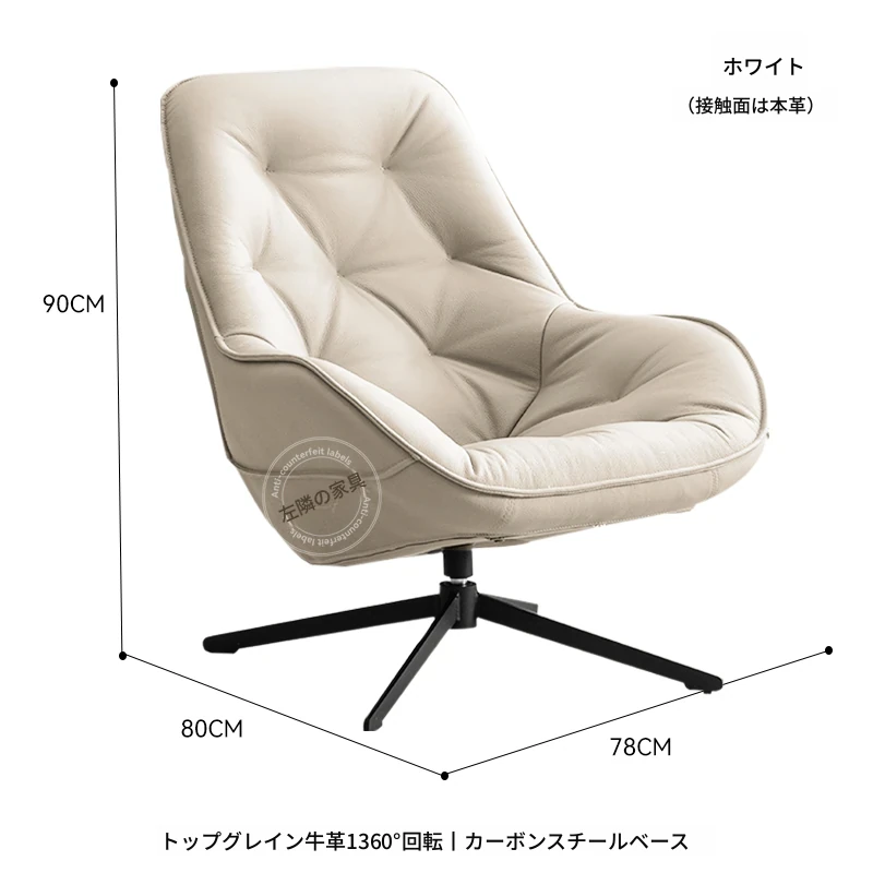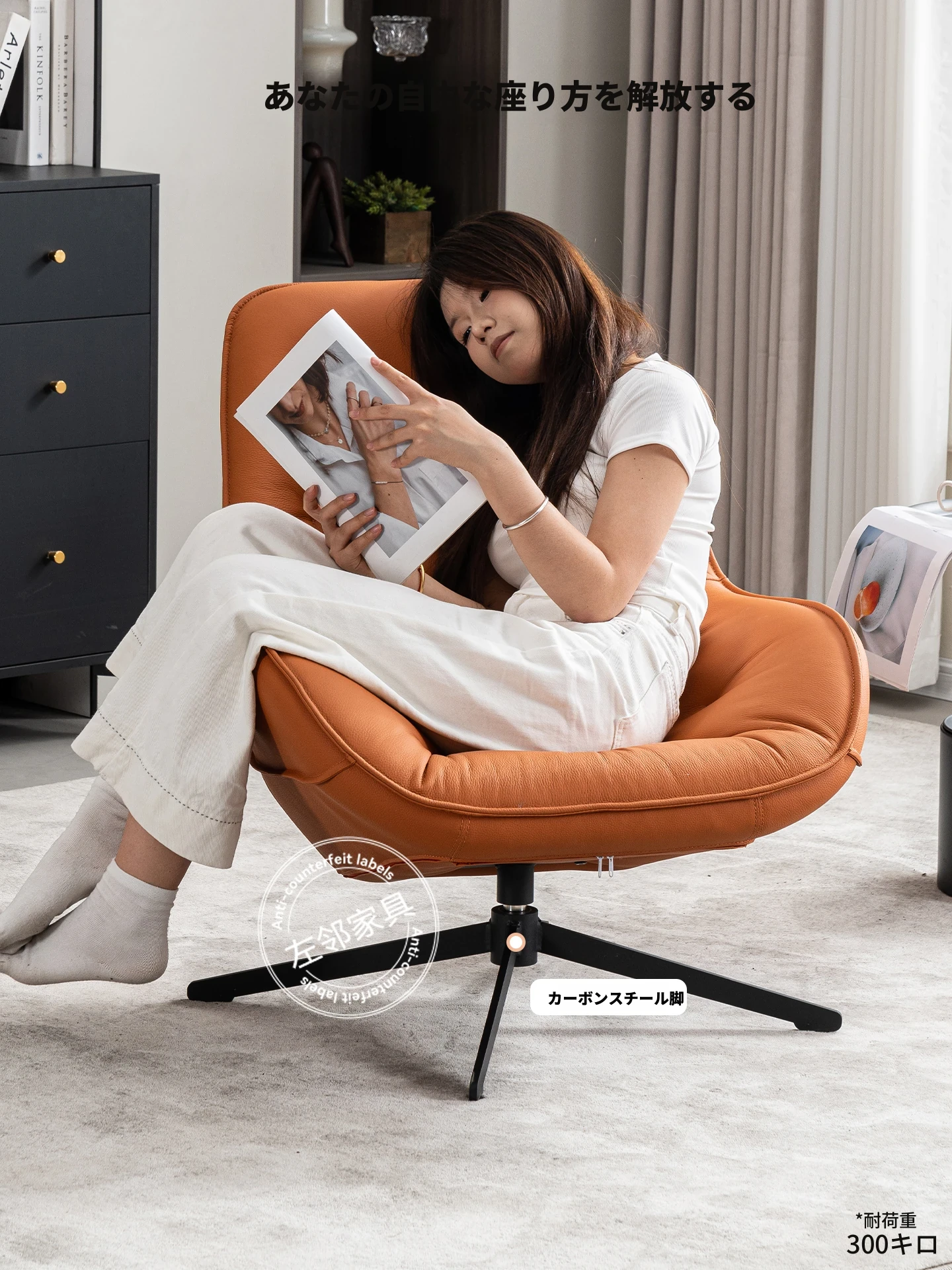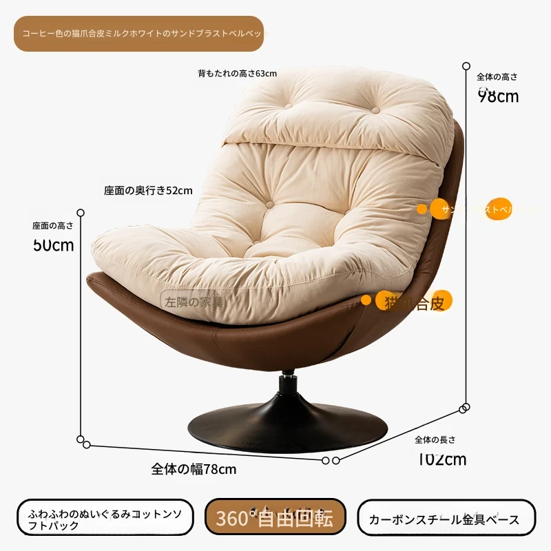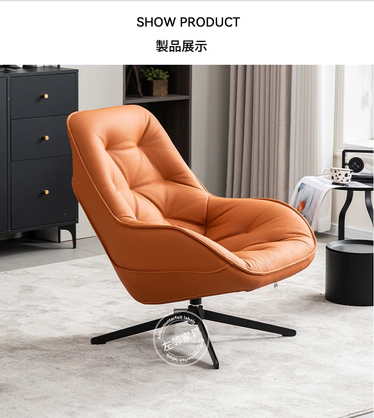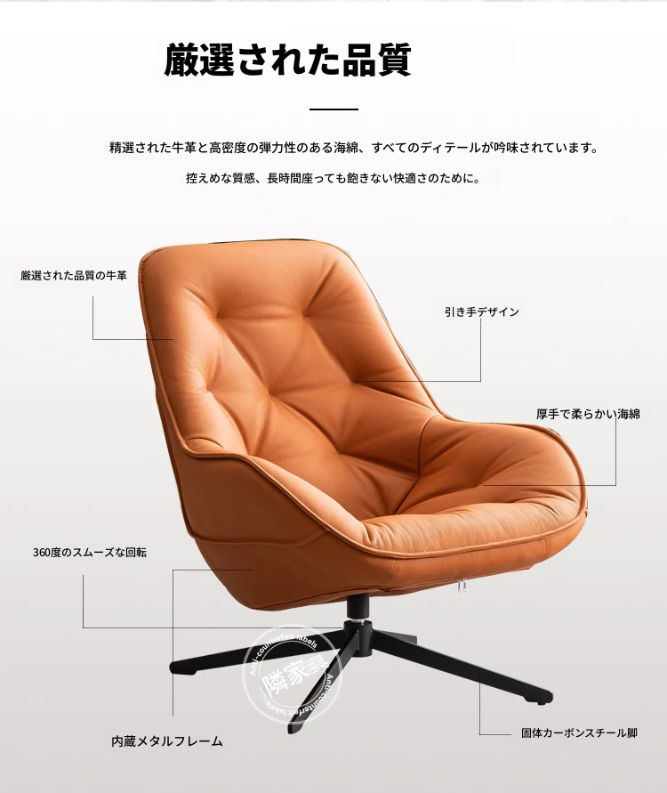 イタリアンスタイルの回転式一人掛けソファチェア|本革製のラグジュアリーなリラックスチェア|家庭用・バルコニーにも最適な快適な一脚ソファ!