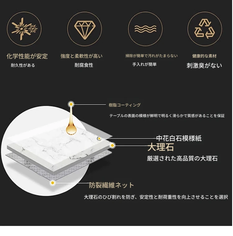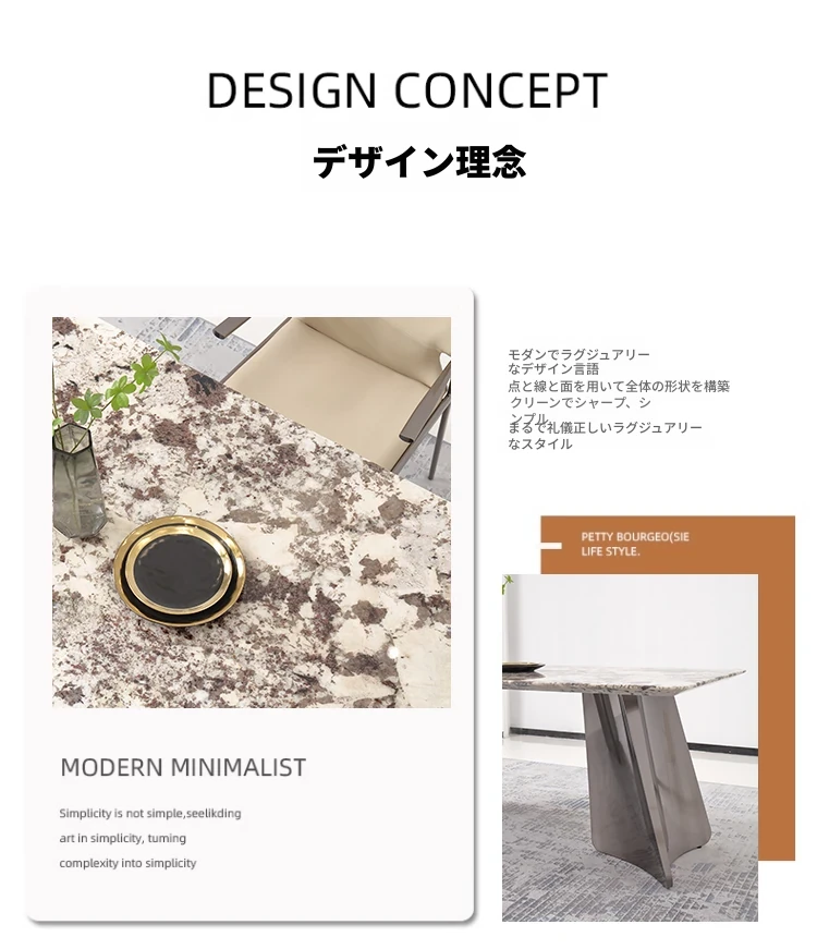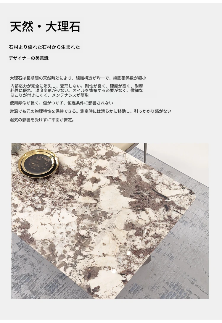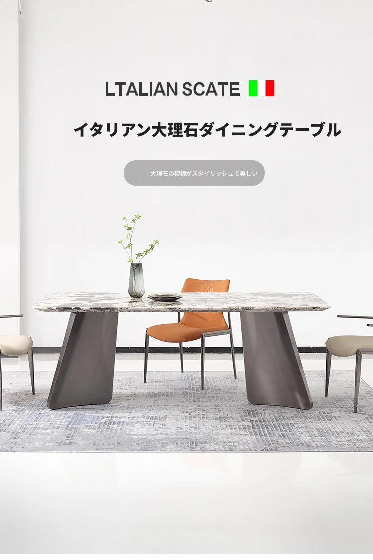 イタリアンスタイルのラグジュアリーなダイニングテーブル&チェアセット|モダンでシンプルなデザイン|狭い家でも使える長方形の大理石テーブルで、優雅な食事時間をお楽しみください!