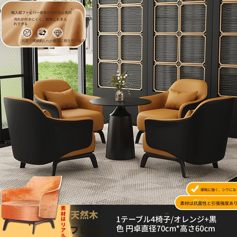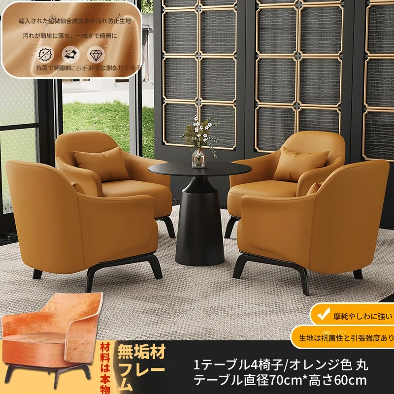 1テーブル4椅子+円卓:70cm【オレンジ+ブラック】
