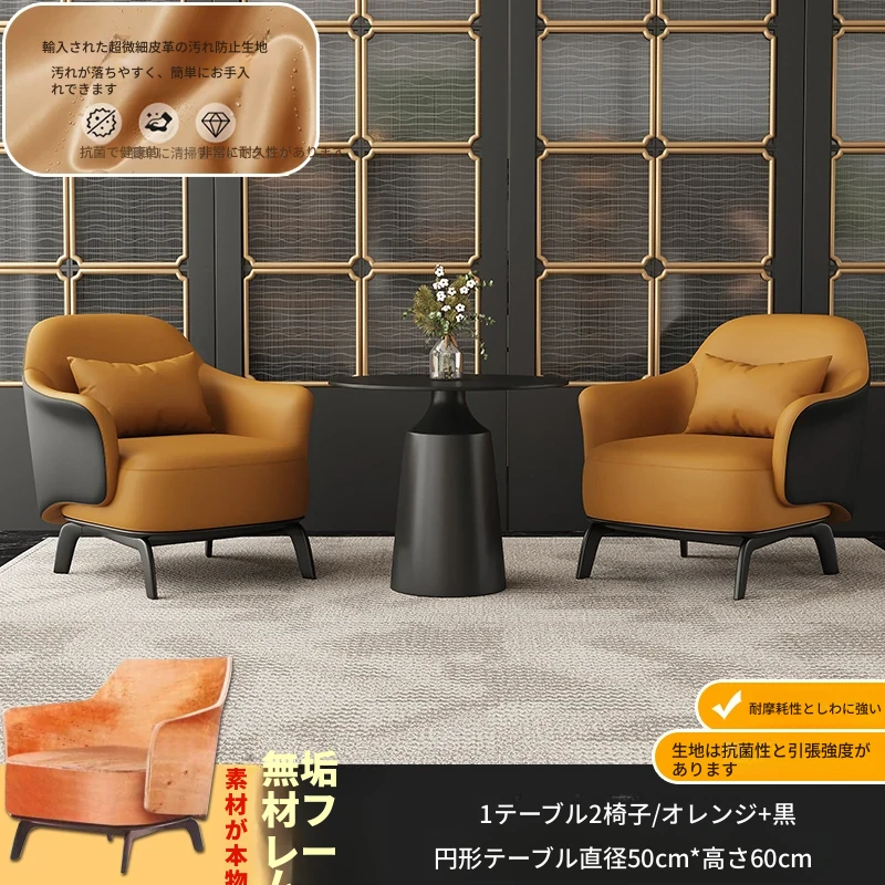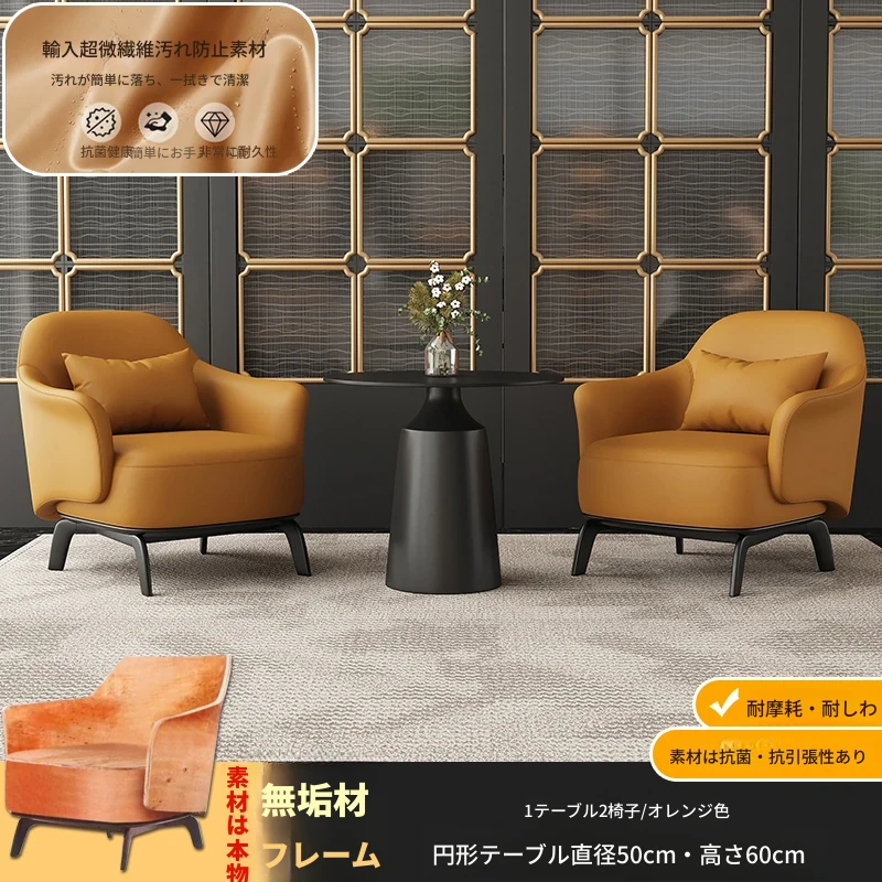 1テーブル2椅子+円卓:50cm【オレンジ+ブラック】