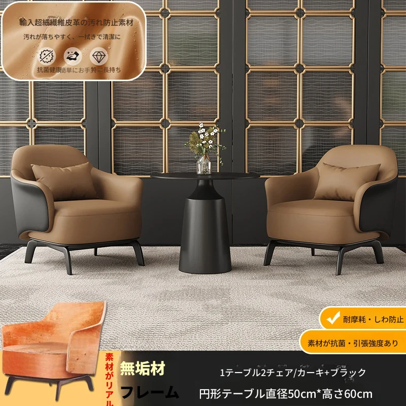 1テーブル2椅子+円卓:50cm【カーキ+ブラック】