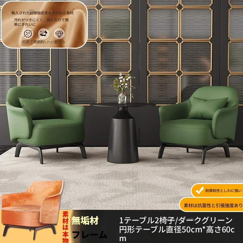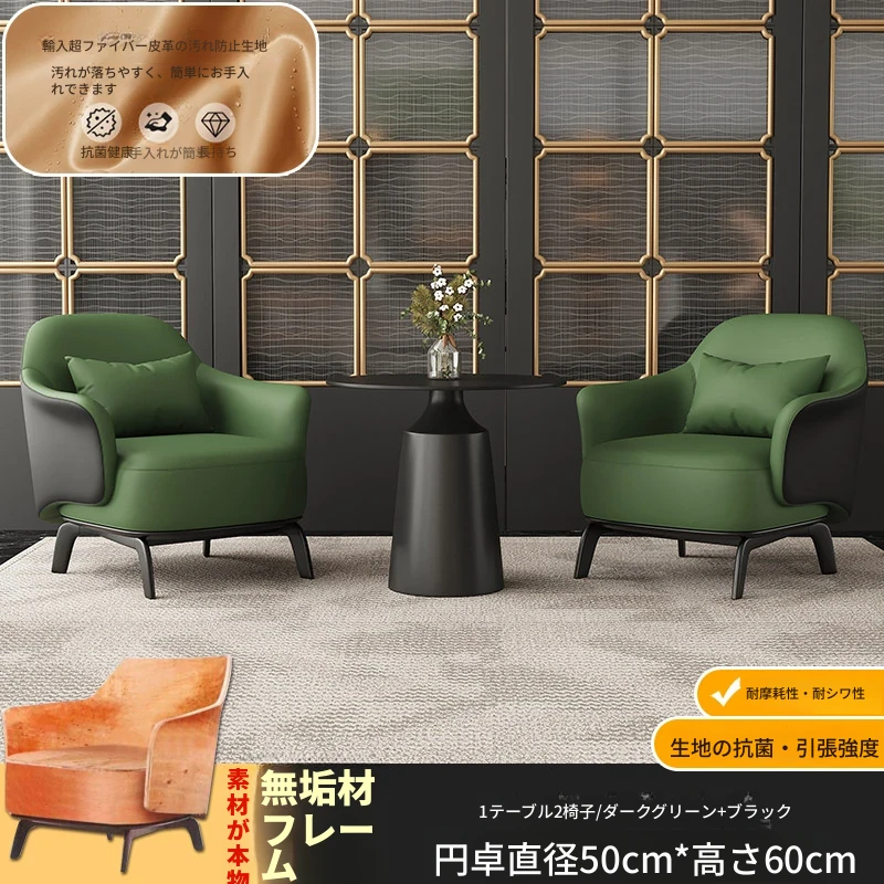 1テーブル2椅子+円卓:50cm【ダークグリーン+ブラック】
