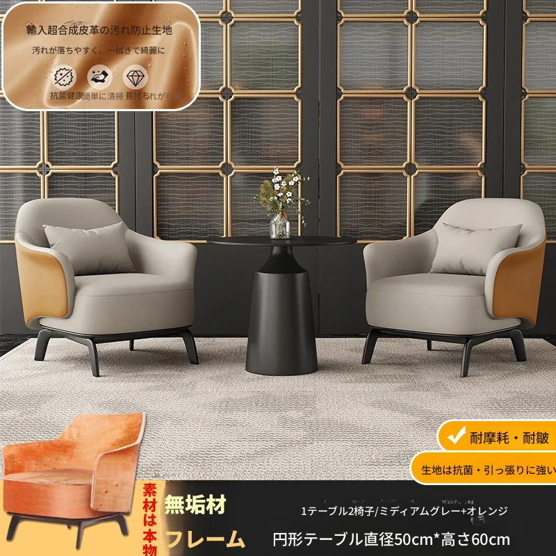 1テーブル2椅子+円卓:50cm【ミディアムグレー+オレンジ】