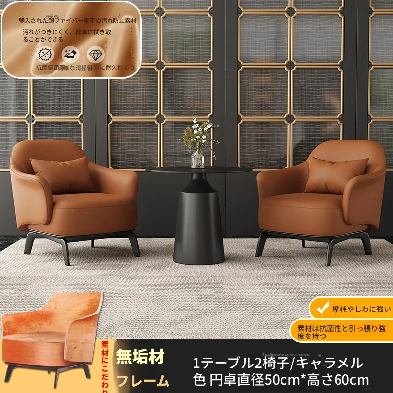 1テーブル2椅子+円卓:50cm【キャラメル】