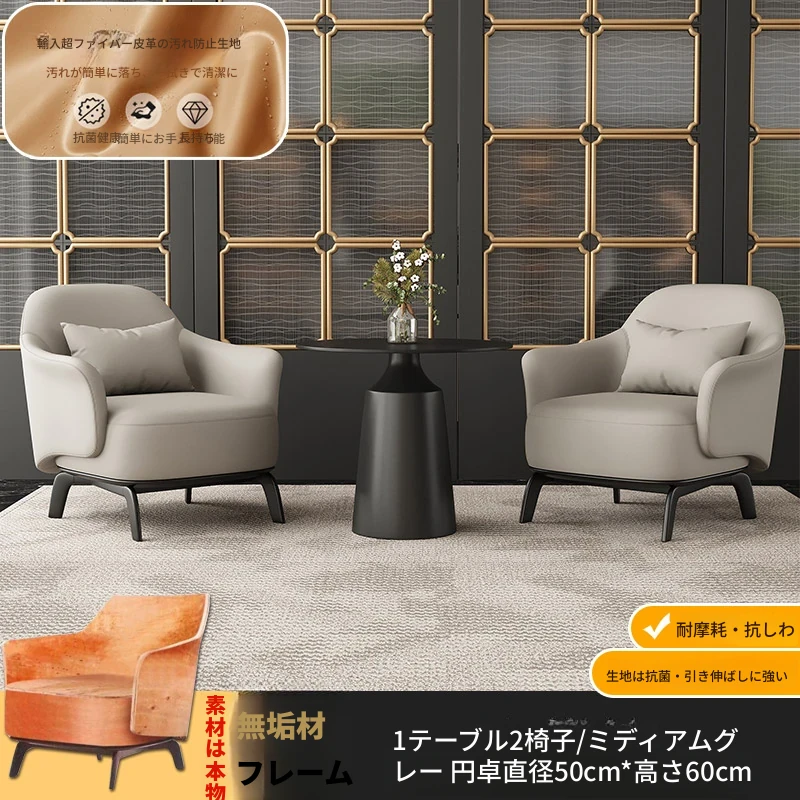 1テーブル2椅子+円卓:50cm【ミディアムグレー】