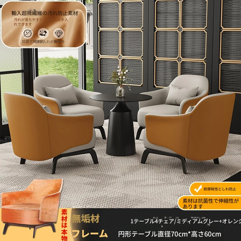 1テーブル4椅子+円卓:70cm【ミディアムグレー+オレンジ】