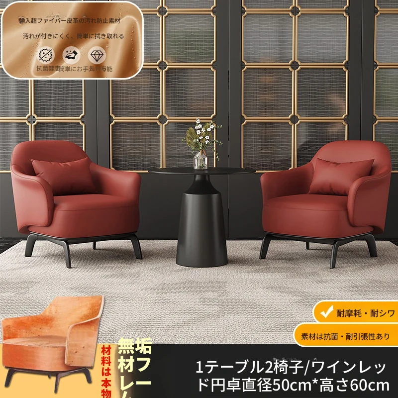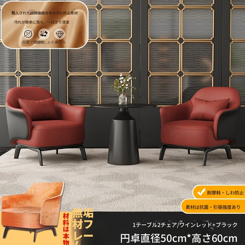 1テーブル2椅子+円卓:50cm【ワインレッド+ブラック】