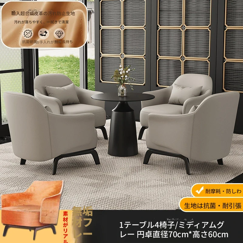 1テーブル4椅子+円卓:70cm【ミディアムグレー】