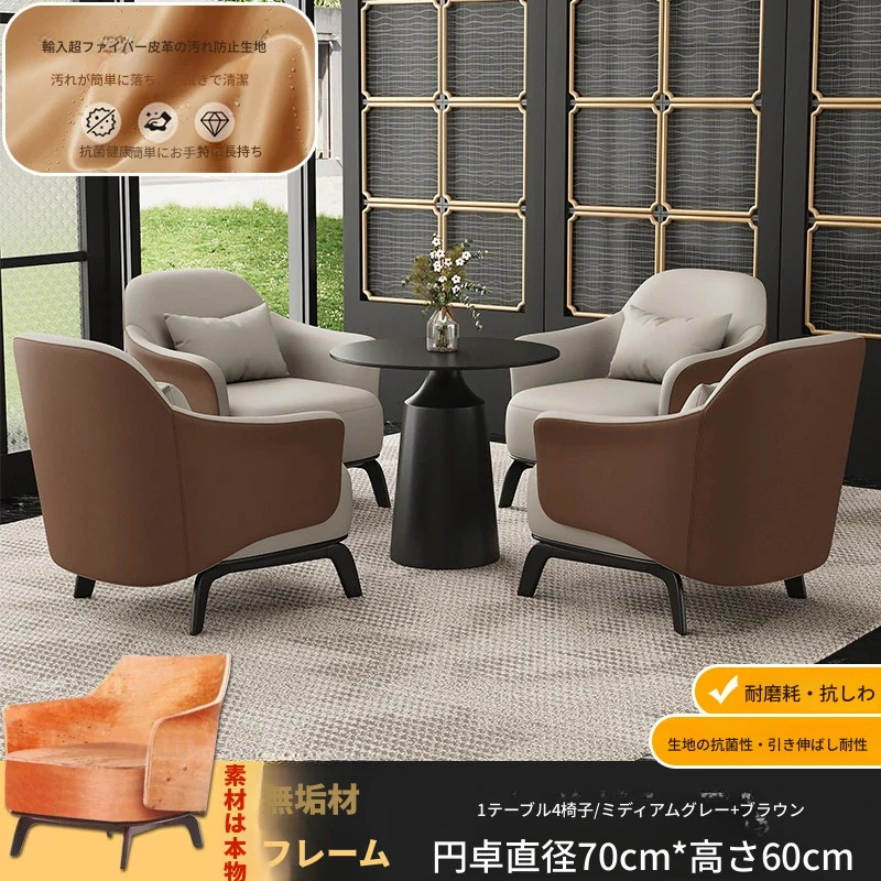 1テーブル4椅子+円卓:70cm【ミディアムグレー+ブラウン】