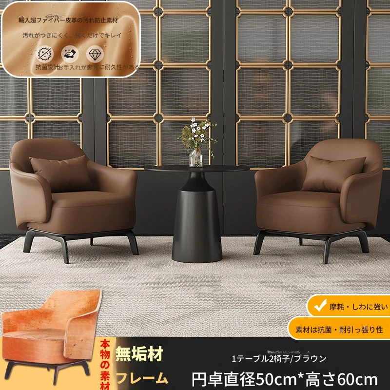 1テーブル2椅子+円卓:50cm【ブラウン】
